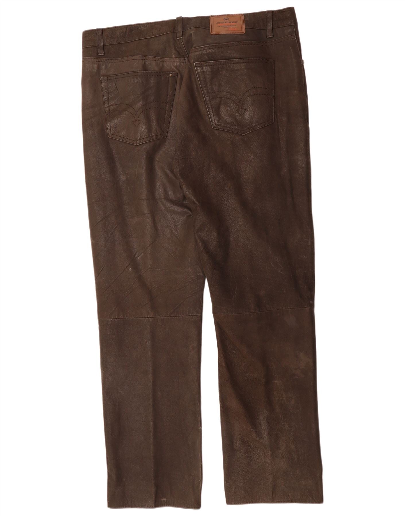 CHEVIREX Мужские прямые кожаные брюки W40 L33 Коричневые кожаные