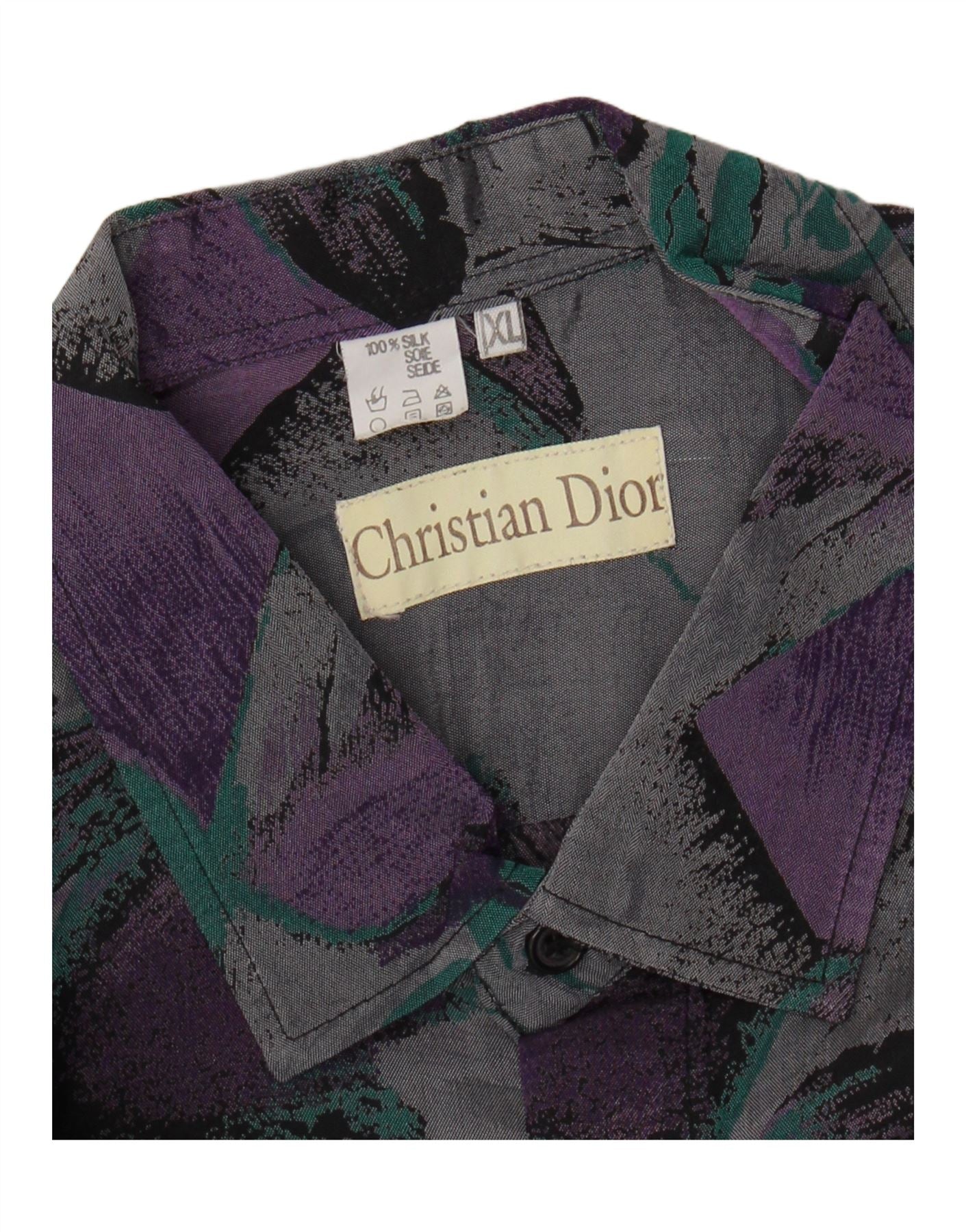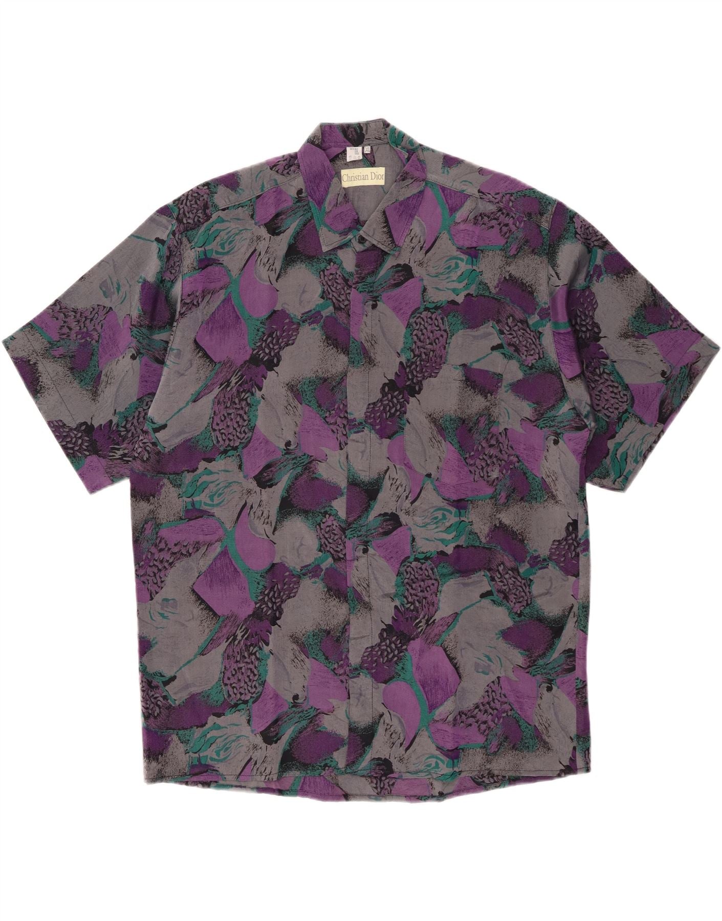 CHRISTIAN DIOR Мужская рубашка с коротким рукавом с абстрактным узором XL, разноцветная