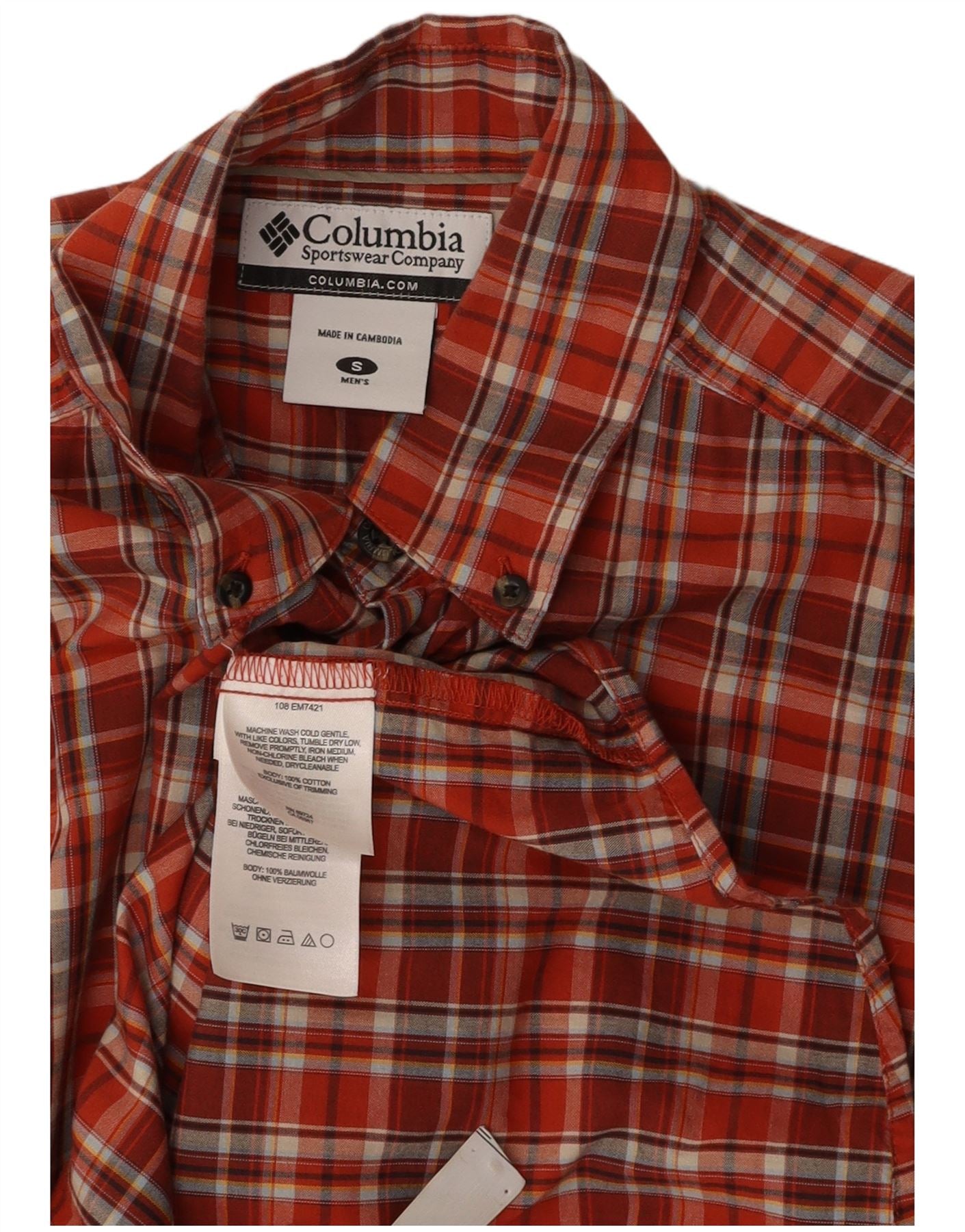 COLUMBIA Мужская рубашка с коротким рукавом, маленькая красная клетка, хлопок