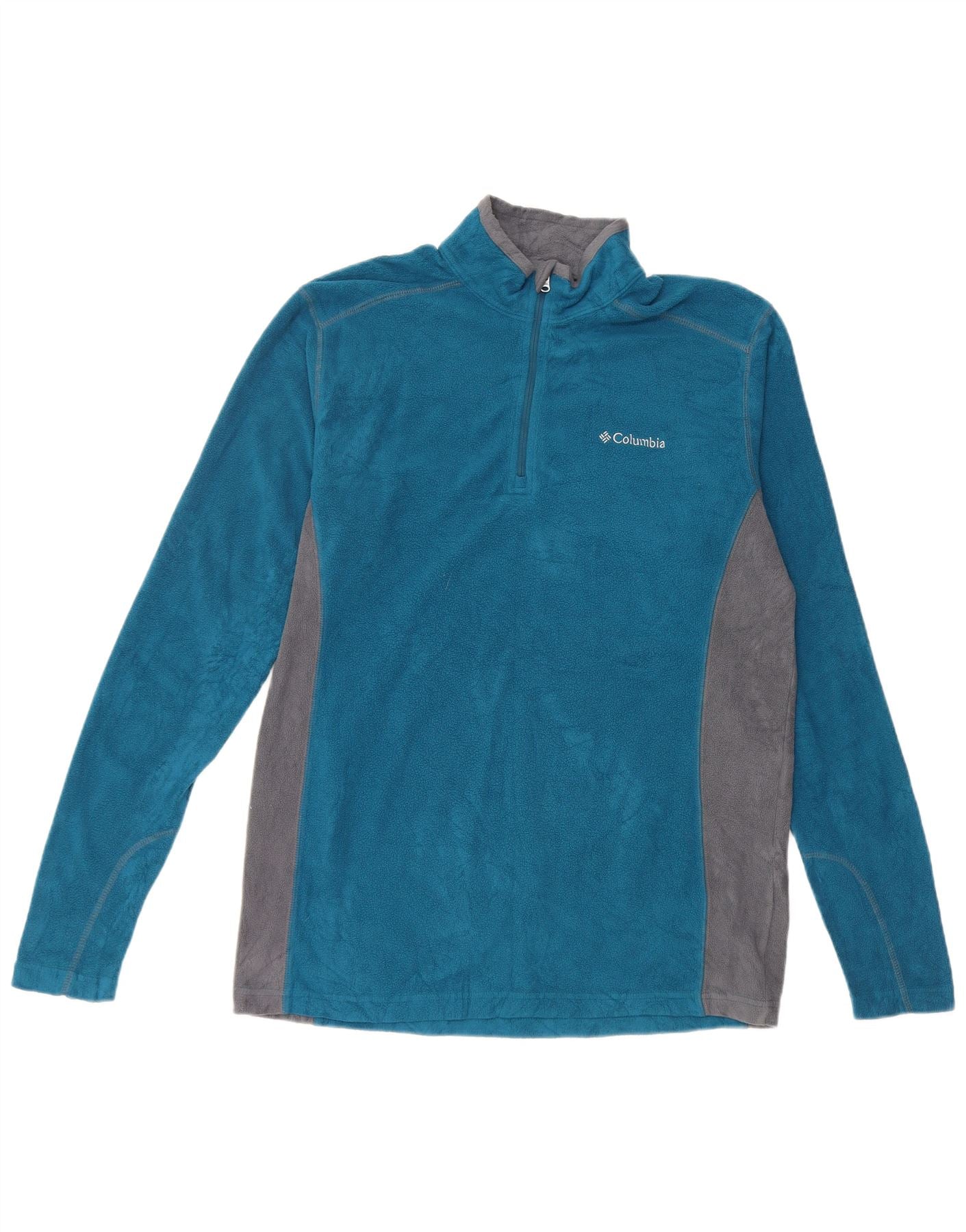 COLUMBIA Mens Zip Neck Fleece Jumper Medium Blue Colourblock Polyester