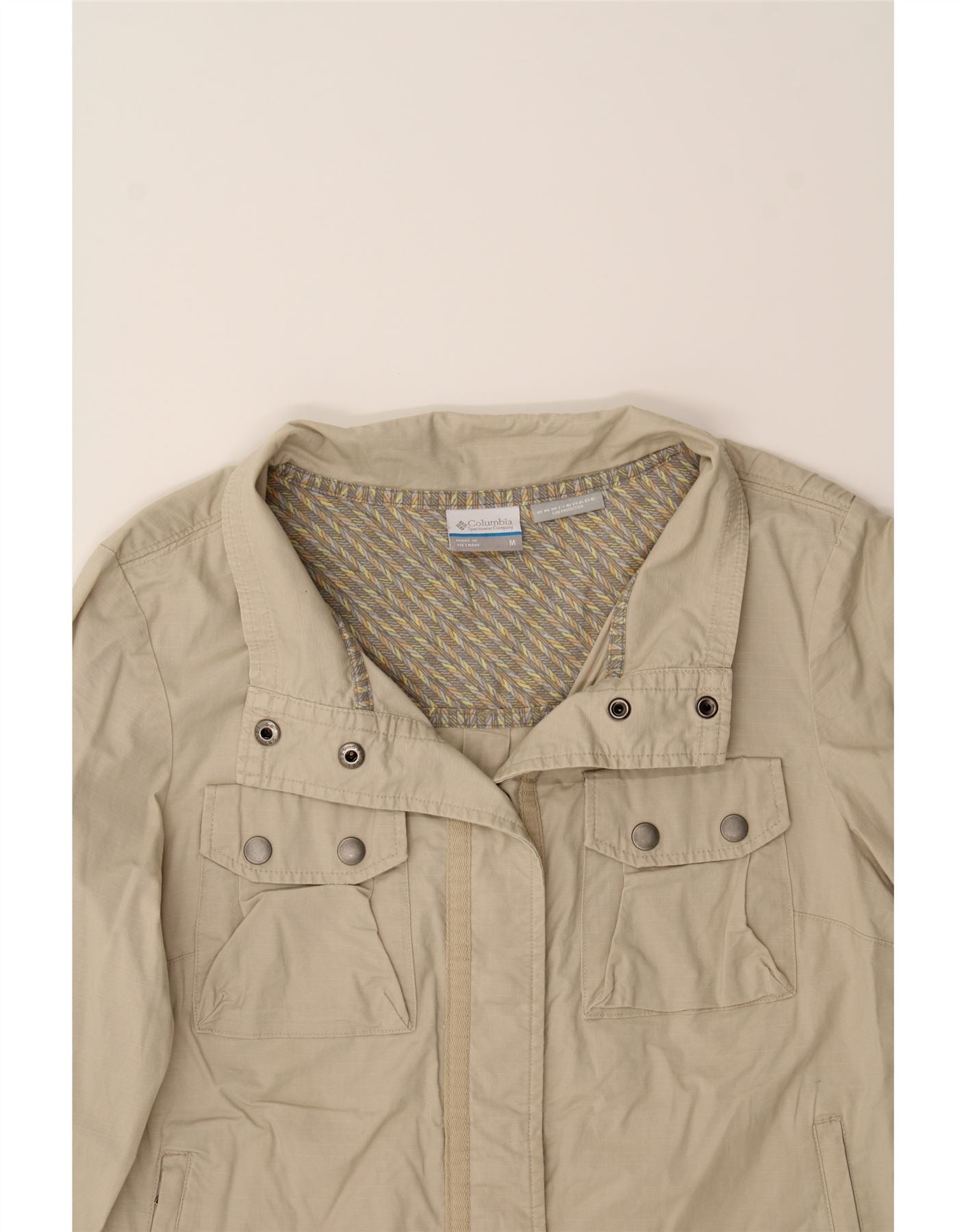 COLUMBIA Womens Bomber Jacket UK 14 Medium Beige Cotton