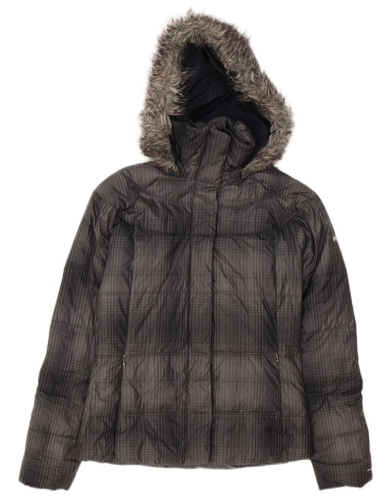 COLUMBIA Womens Oversized Hooded Padded Jacket UK 6 XS Grey Check
