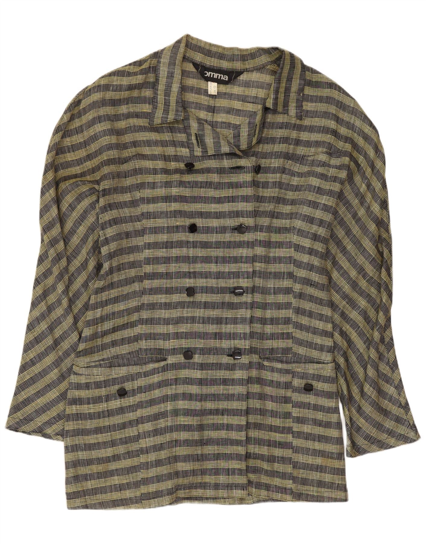 Comma, женский двубортный пиджак, Великобритания 14, шерстяной в крупную желтую клетку