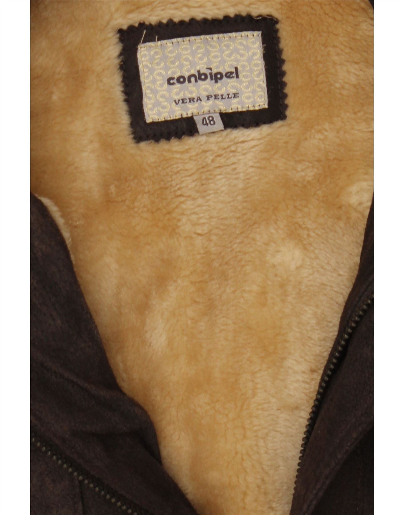 CONBIPEL Mens Shearling Jacket IT 48 Medium Brown Leather