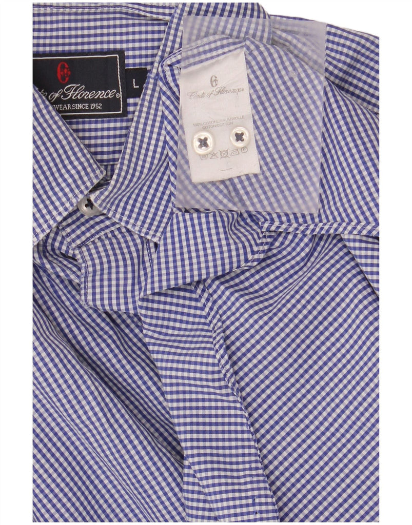 Мужская рубашка CONTE OF FLORENCE, большая синяя хлопковая клетка в мелкую клетку