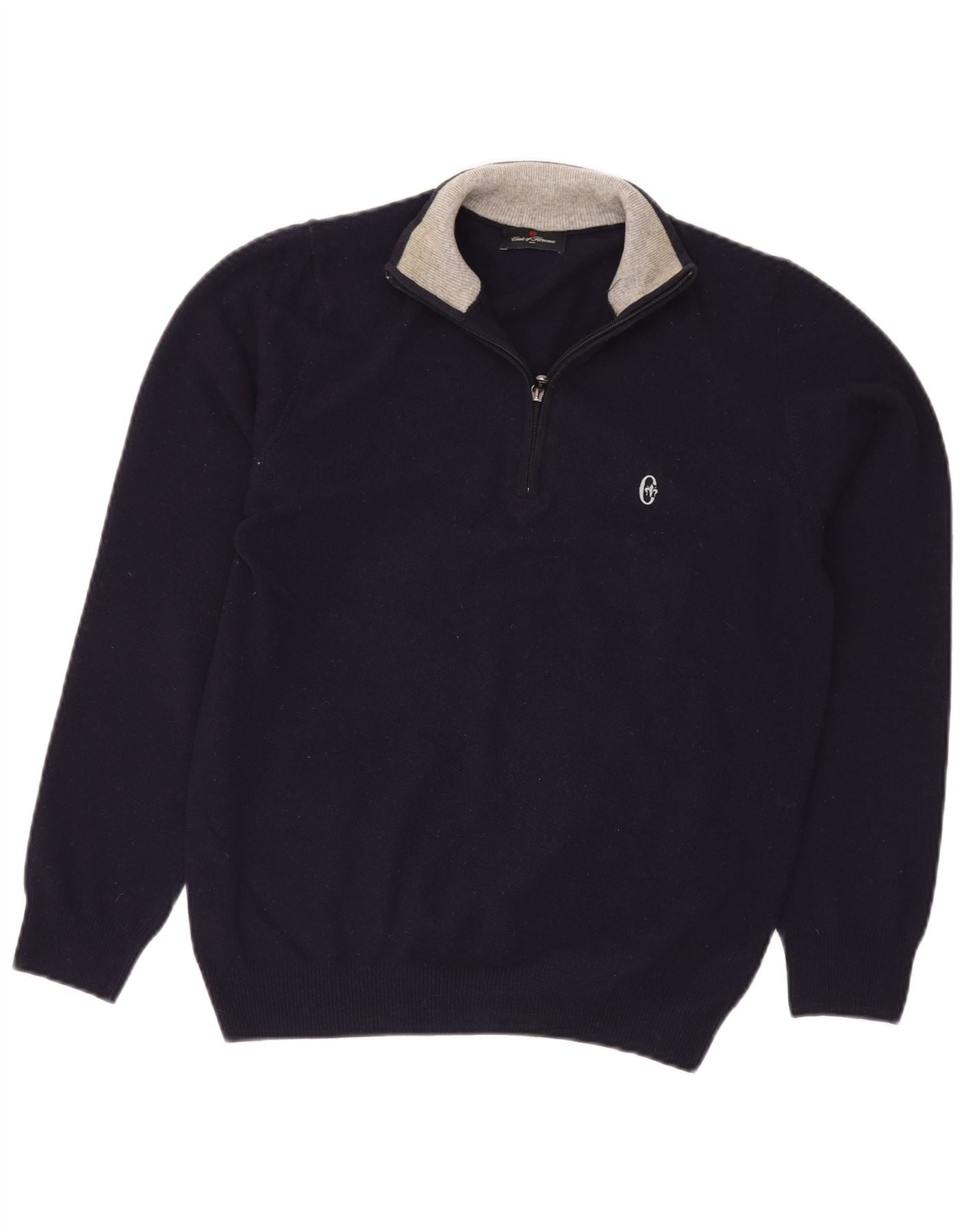 Мужской джемпер с воротником на молнии CONTE OF FLORENCE, маленький темно-синий шерстяной свитер