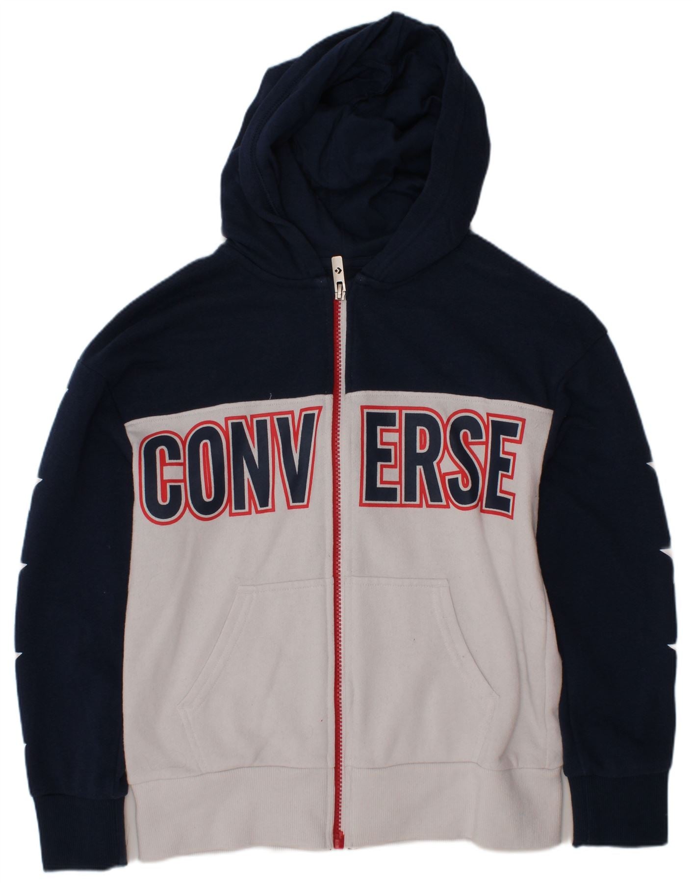 Свитер с капюшоном на молнии для мальчиков 8–9 лет CONVERSE, маленький, темно-синий, цветных блоков