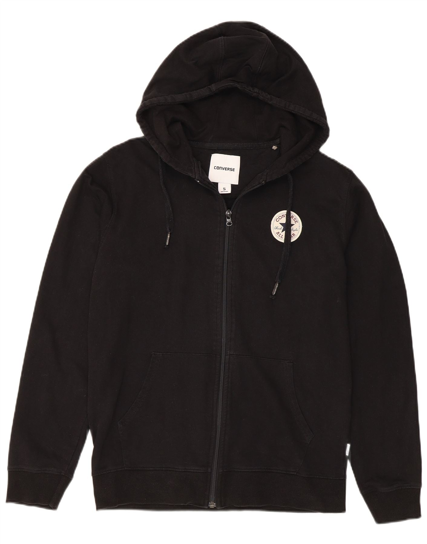 Мужской свитер с капюшоном на молнии CONVERSE, маленький черный, хлопковый