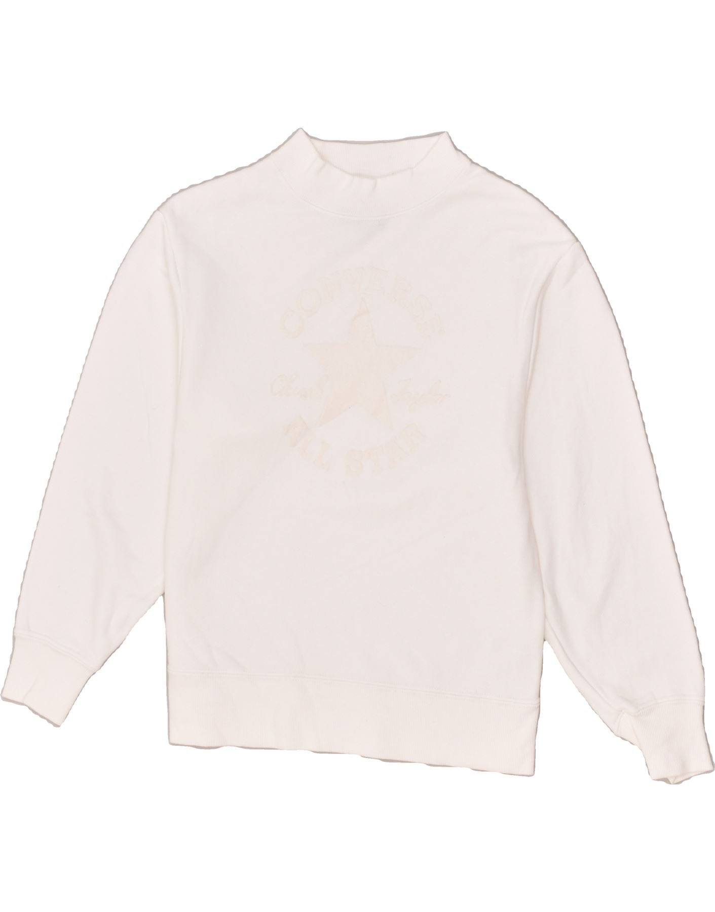 CONVERSE Womens Graphic Sweatshirt Jumper UK 2 2XS White Cotton