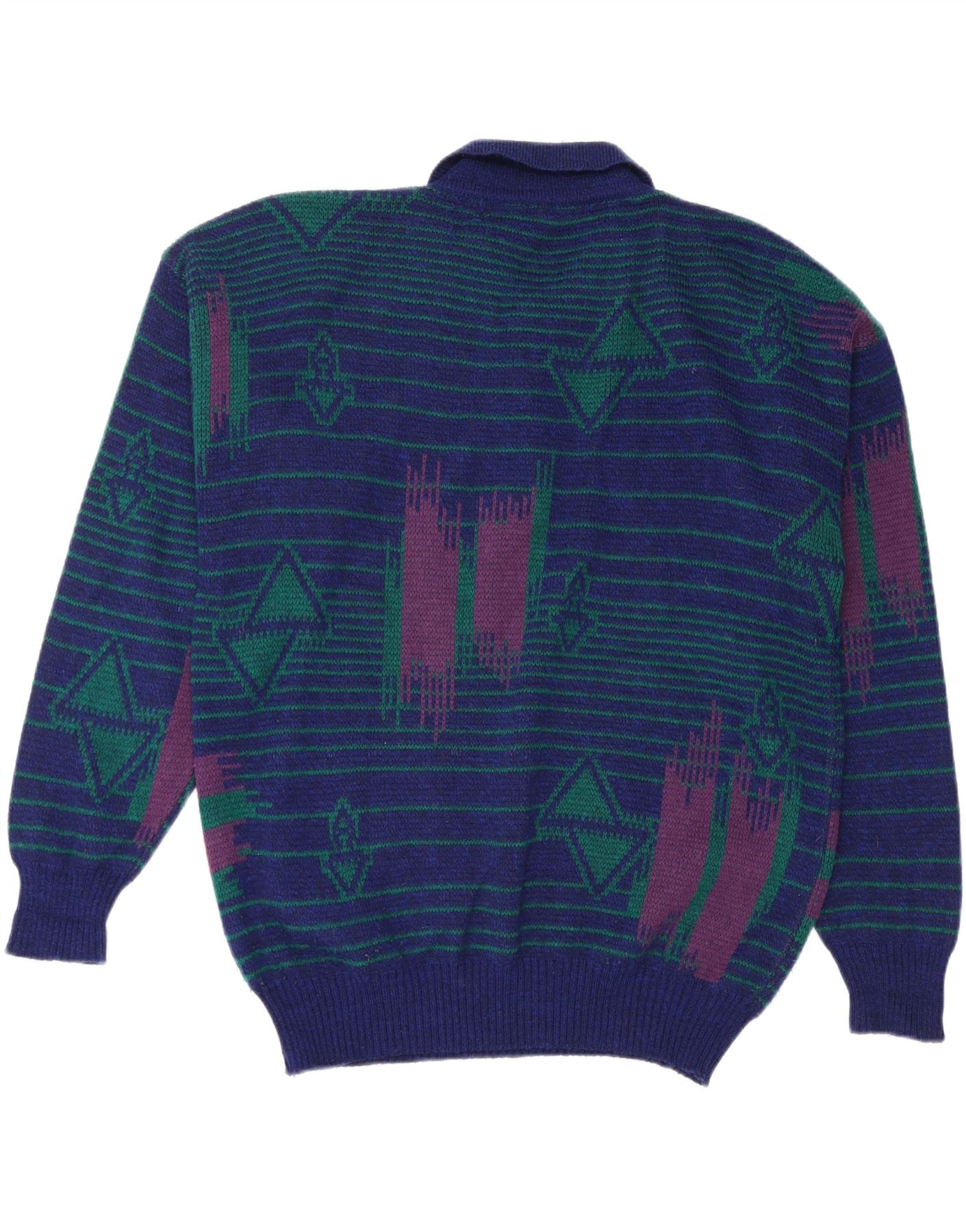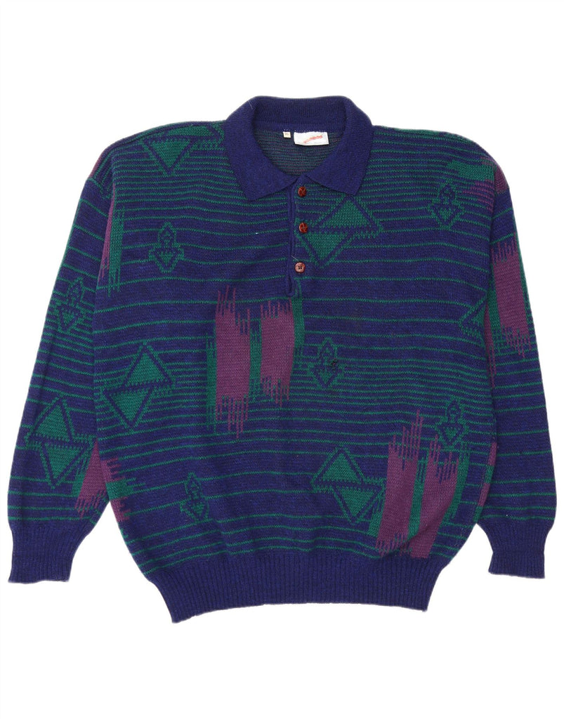 Мужской свитер COSMOS с воротником-поло XL, темно-синий, акрил с геометрическим рисунком