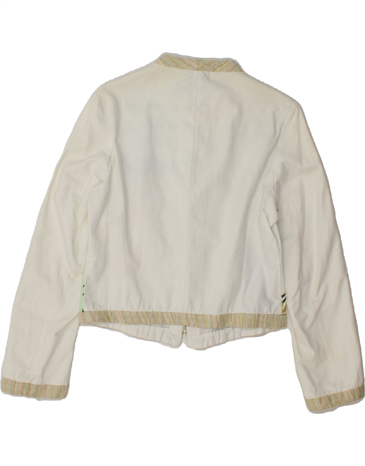 CUSTO BARCELONA Womens Crop Graphic Bomber Jacket EU 42 Large White Art