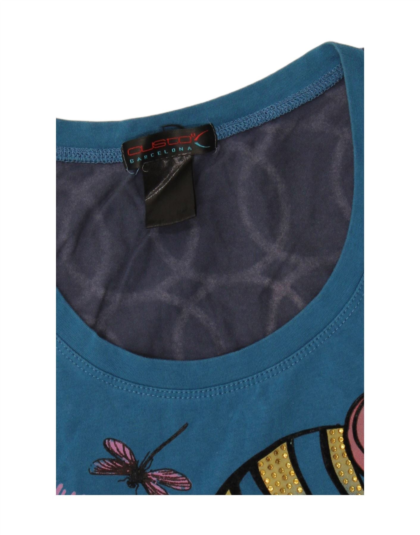 CUSTO BARCELONA Womens Graphic T-Shirt Top UK 12 Medium Navy Blue