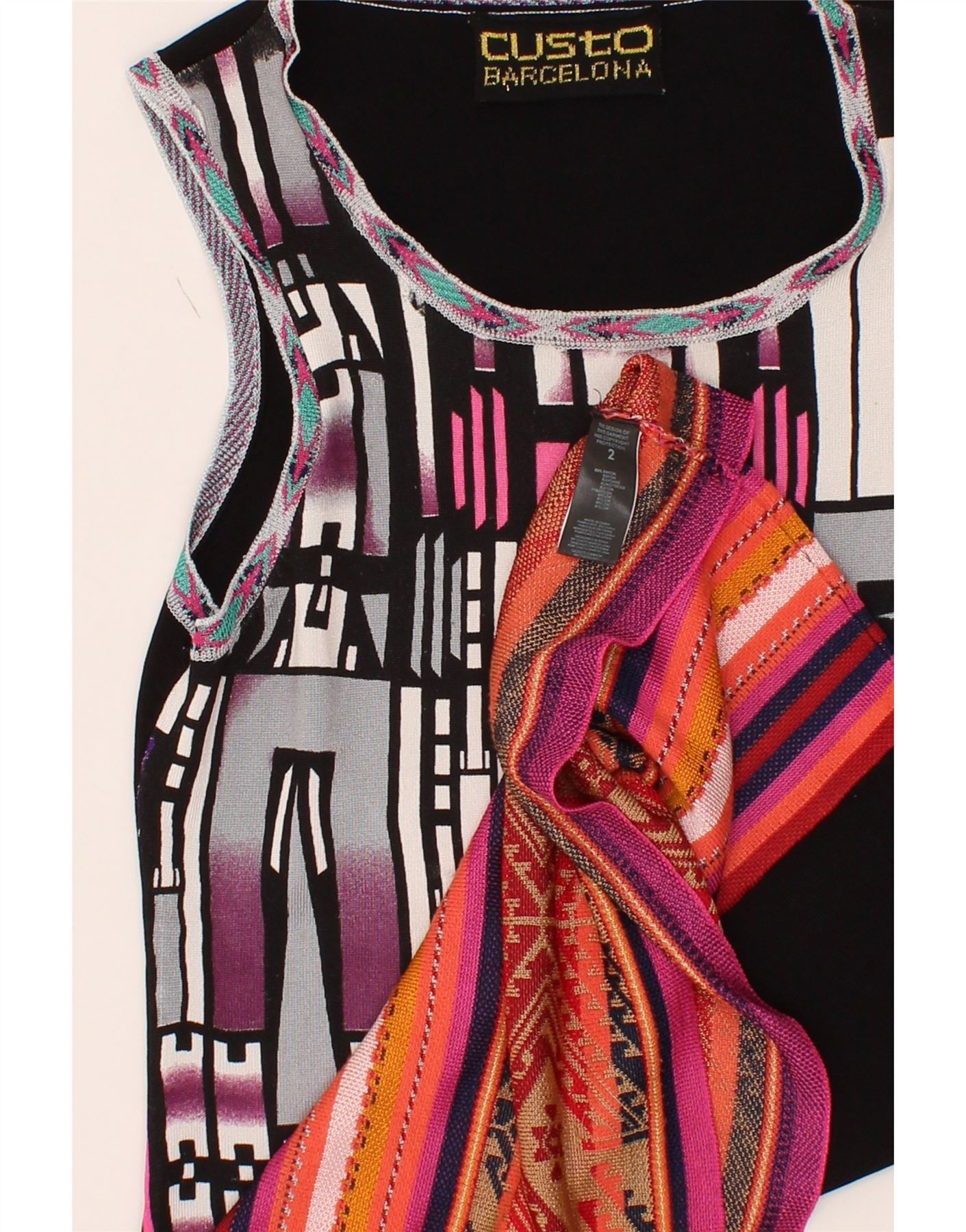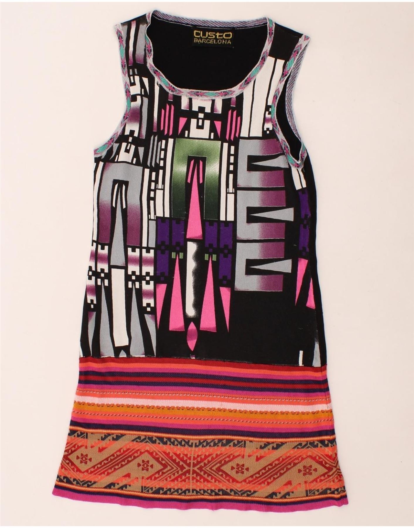 CUSTO BARCELONA Womens Sleeveless Sheath Dress US 2 XS Black Geometric