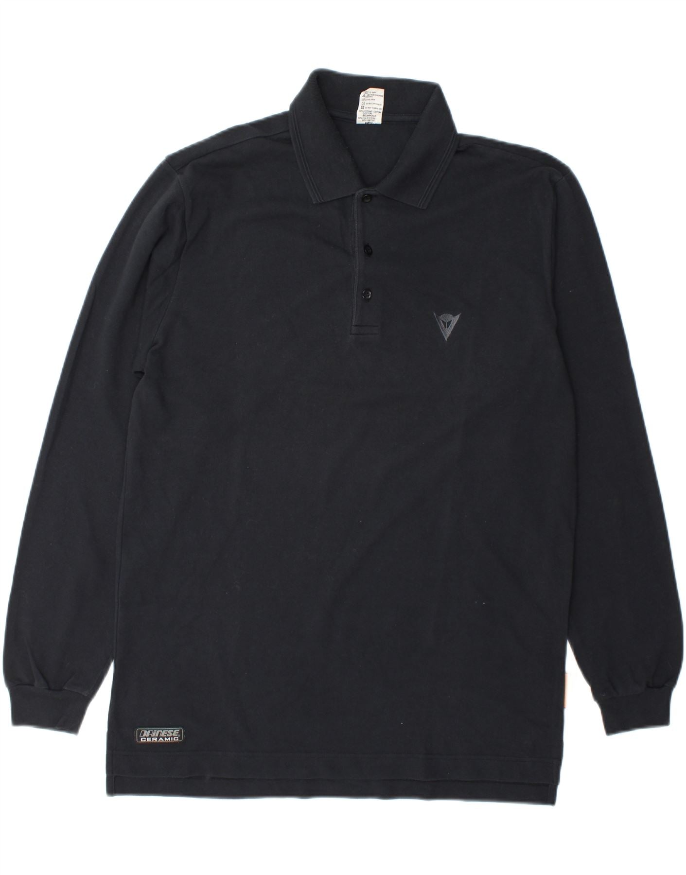 DAINESE Mens Long Sleeve Polo Shirt Large Black Cotton