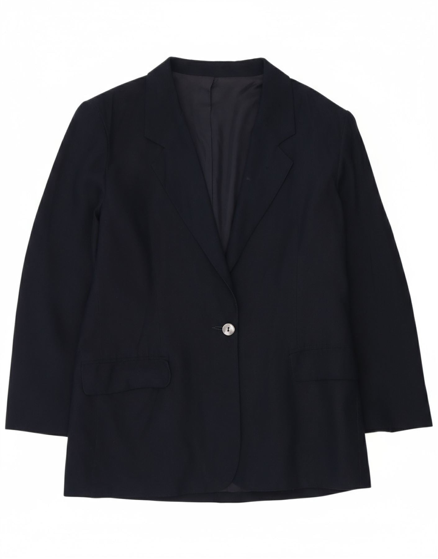 DANIEL HECHTER Womens 1 Button Blazer Jacket UK 14 Large Navy Blue Silk