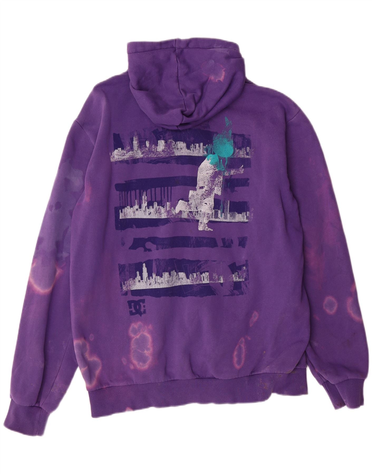 DC Mens Graphic Acid Wash Zip Hoodie Sweater Large Purple Tie Dye
