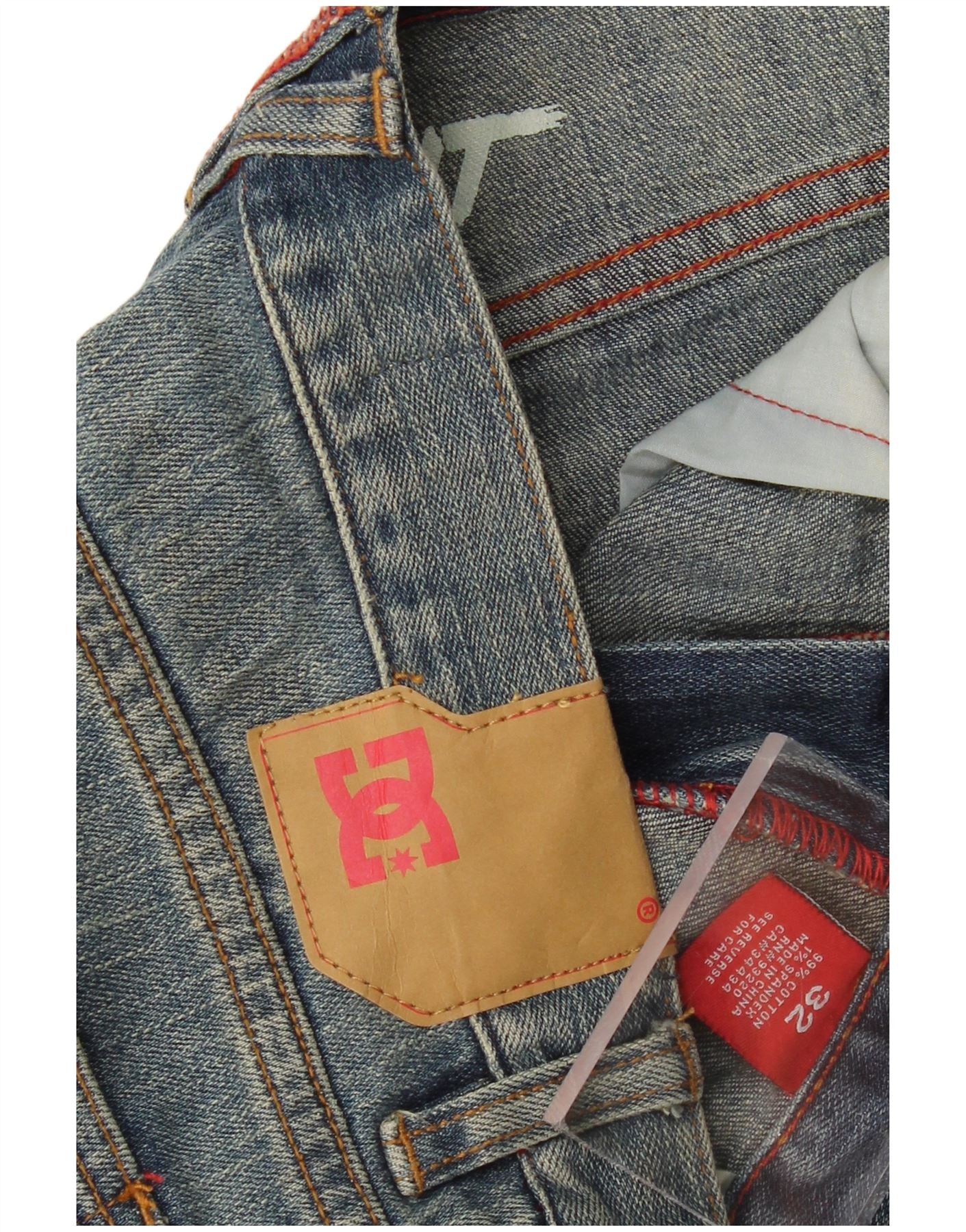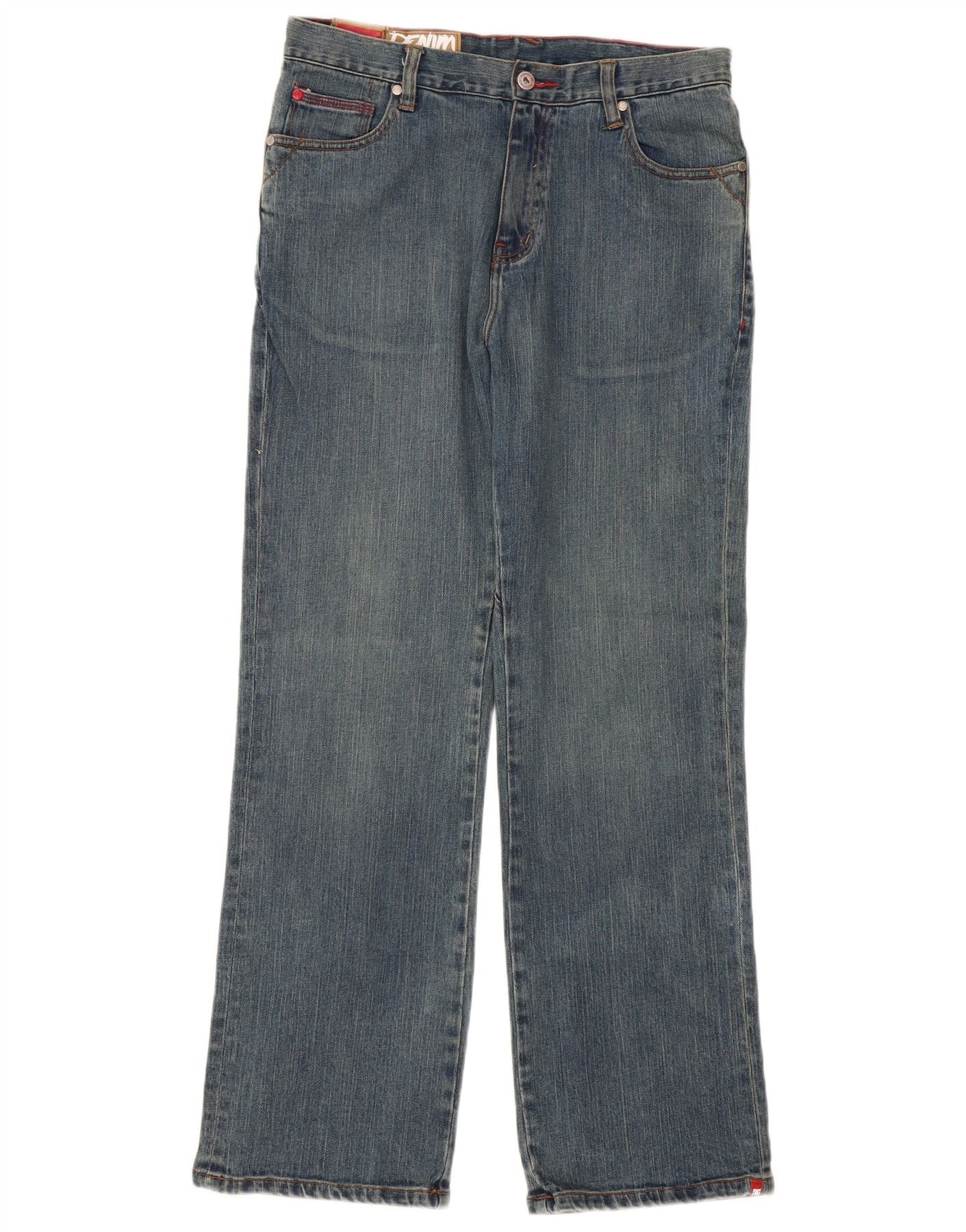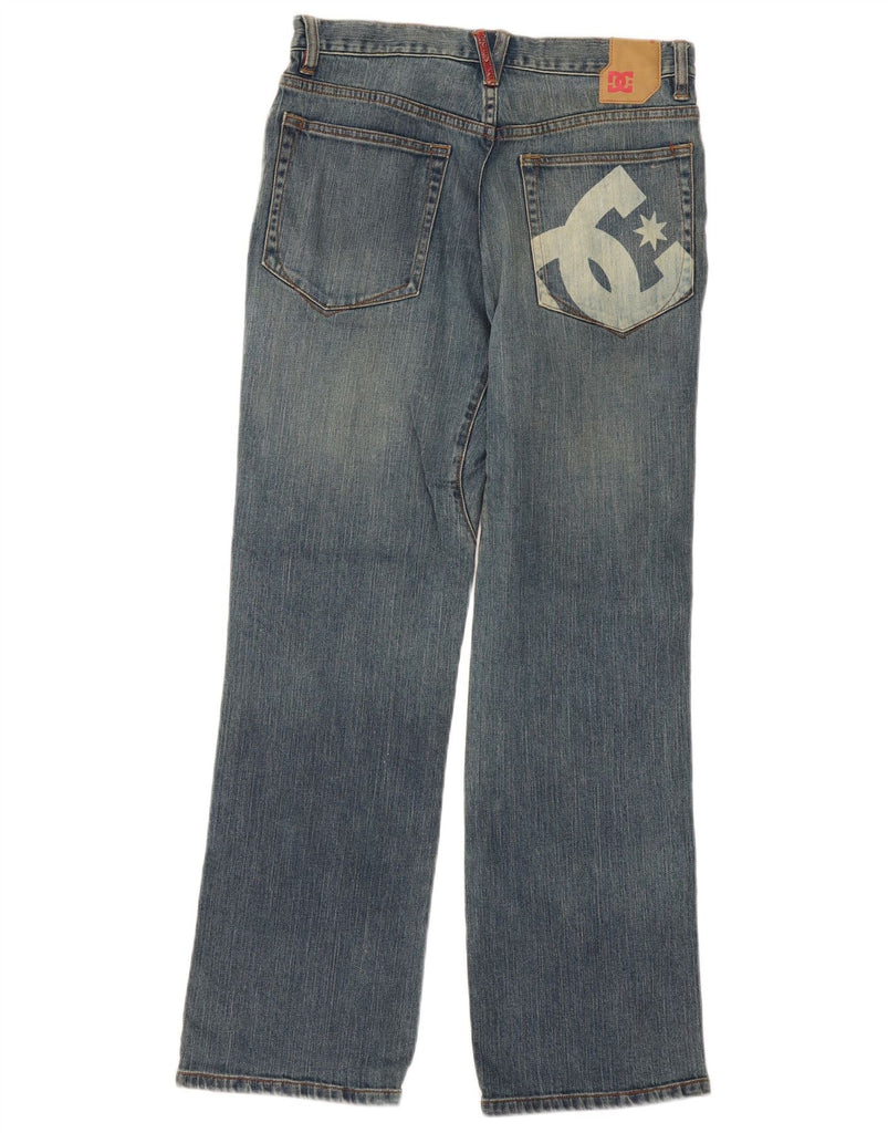 - AI Description: This DC mens straight jeans are crafted from durable blue denim, a comfortable cotton blend with a touch of spandex. They feature a classic straight leg and a regular fit for everyday wear. The button closure ensures a secure fit. Practical pockets are included, and a subtle logo accent adds brand recognition. This design offers a sporty, versatile style.