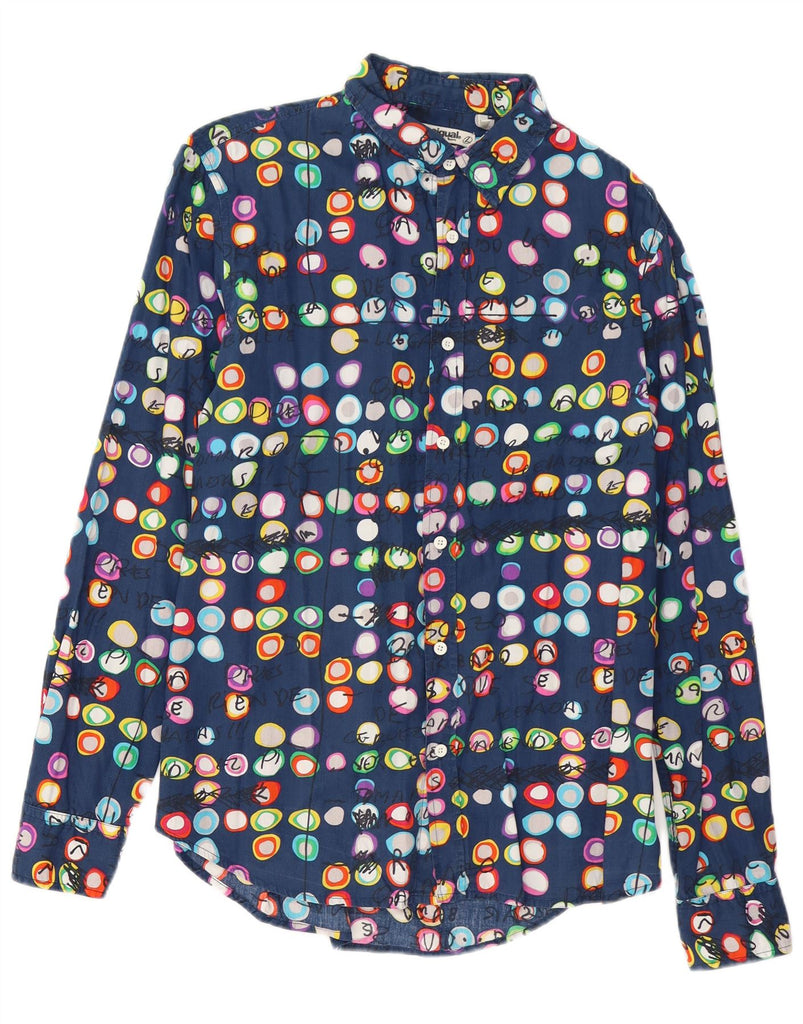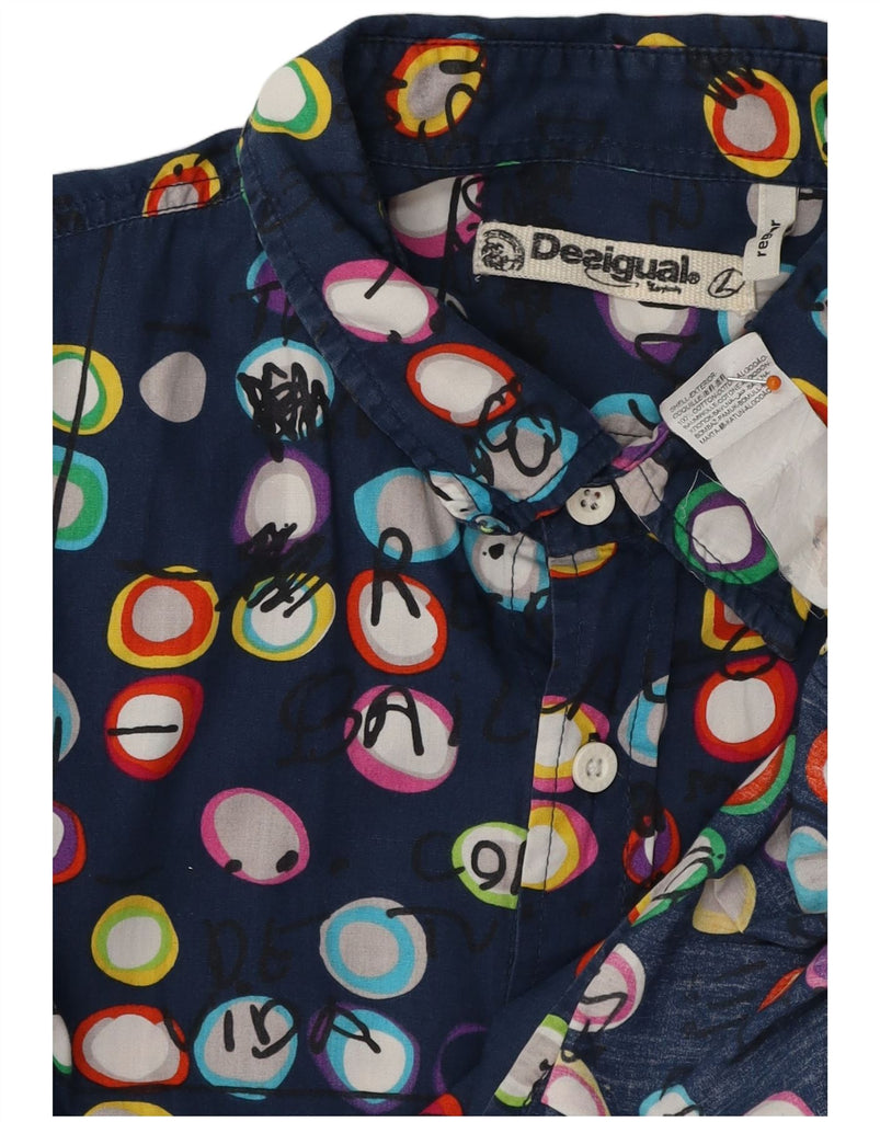 DESIGUAL Мужская рубашка с абстрактным узором, большая темно-синяя хлопковая рубашка с геометрическим рисунком