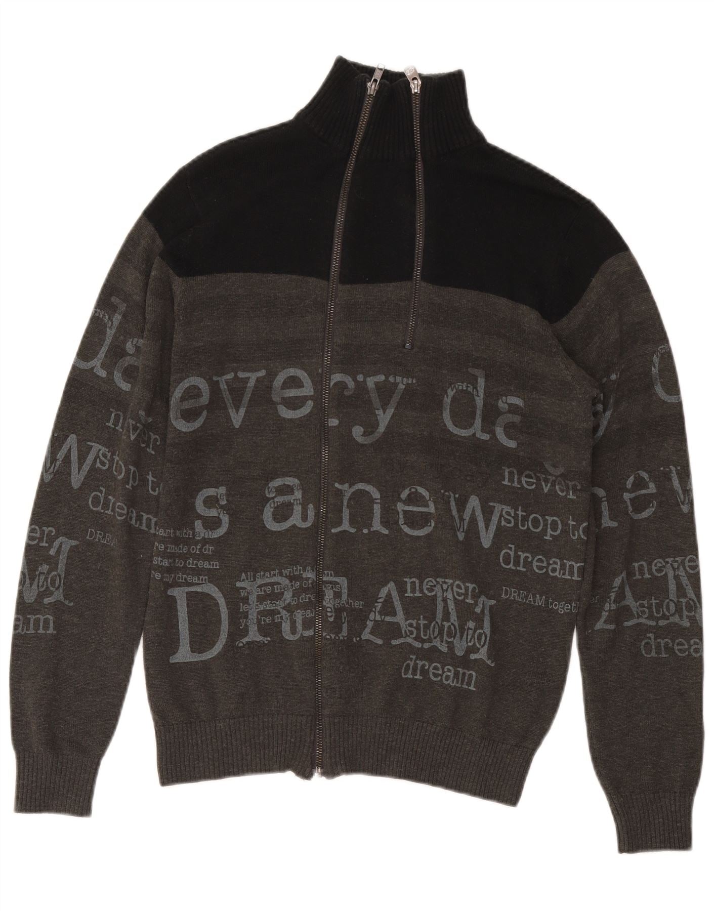DESIGUAL Мужской кардиган с рисунком, маленький серый шерстяной свитер с цветными блоками