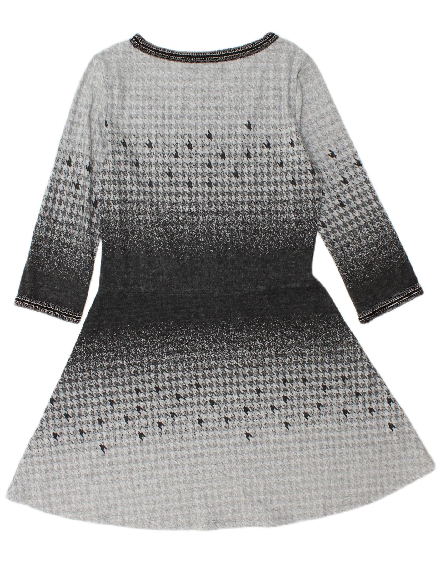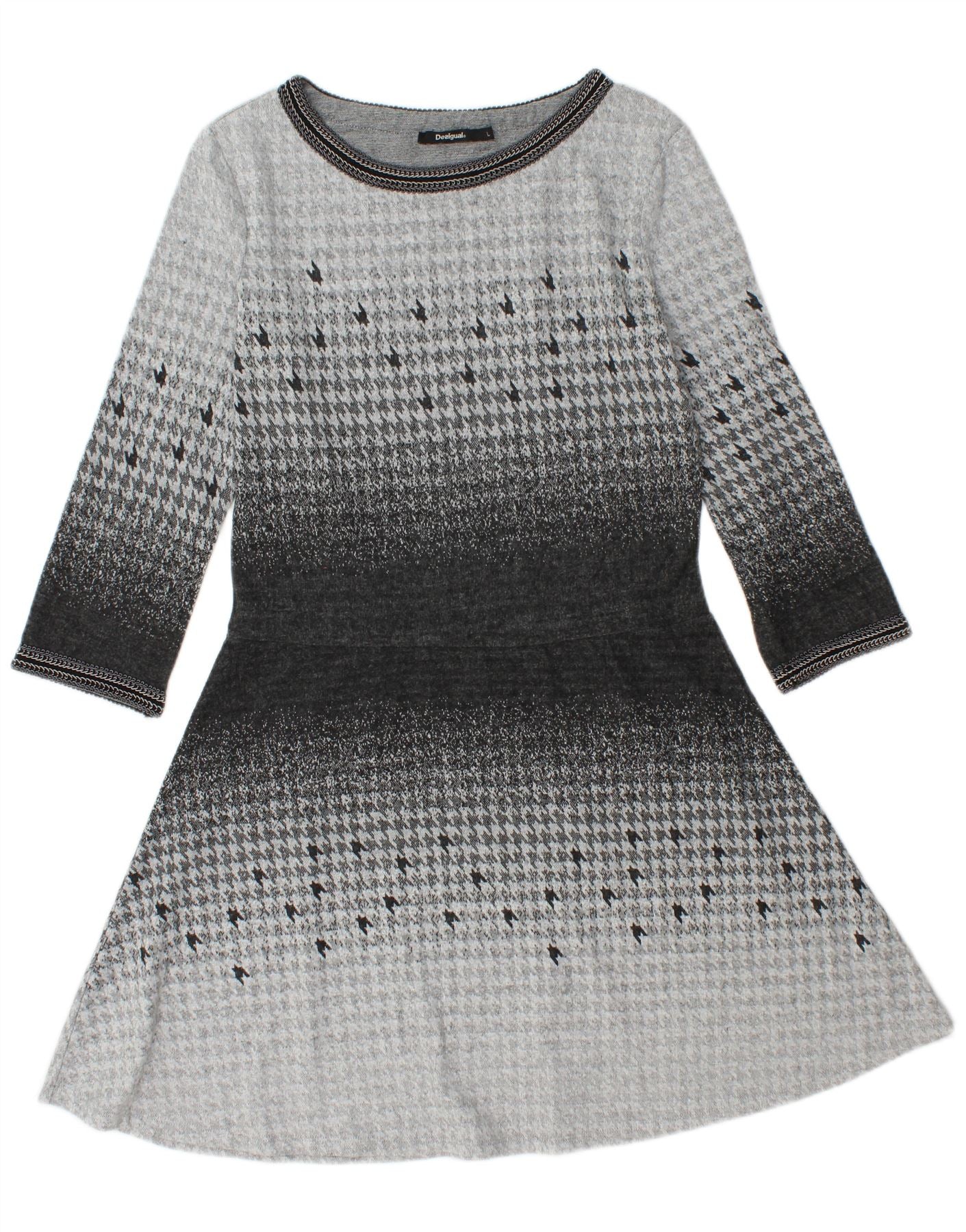 Женское платье А-силуэта с рукавом 3/4 DESIGUAL UK 14, большое серое с узором «гусиные лапки»