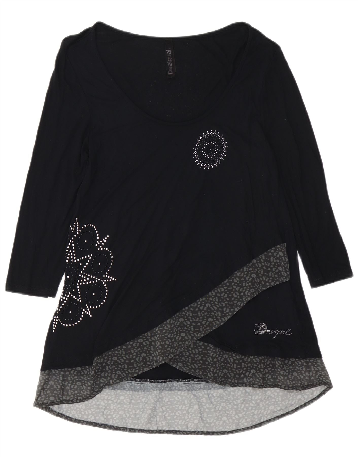 Женское платье трапециевидного силуэта с рукавом 3/4 DESIGUAL UK 12, средний черный, вискоза