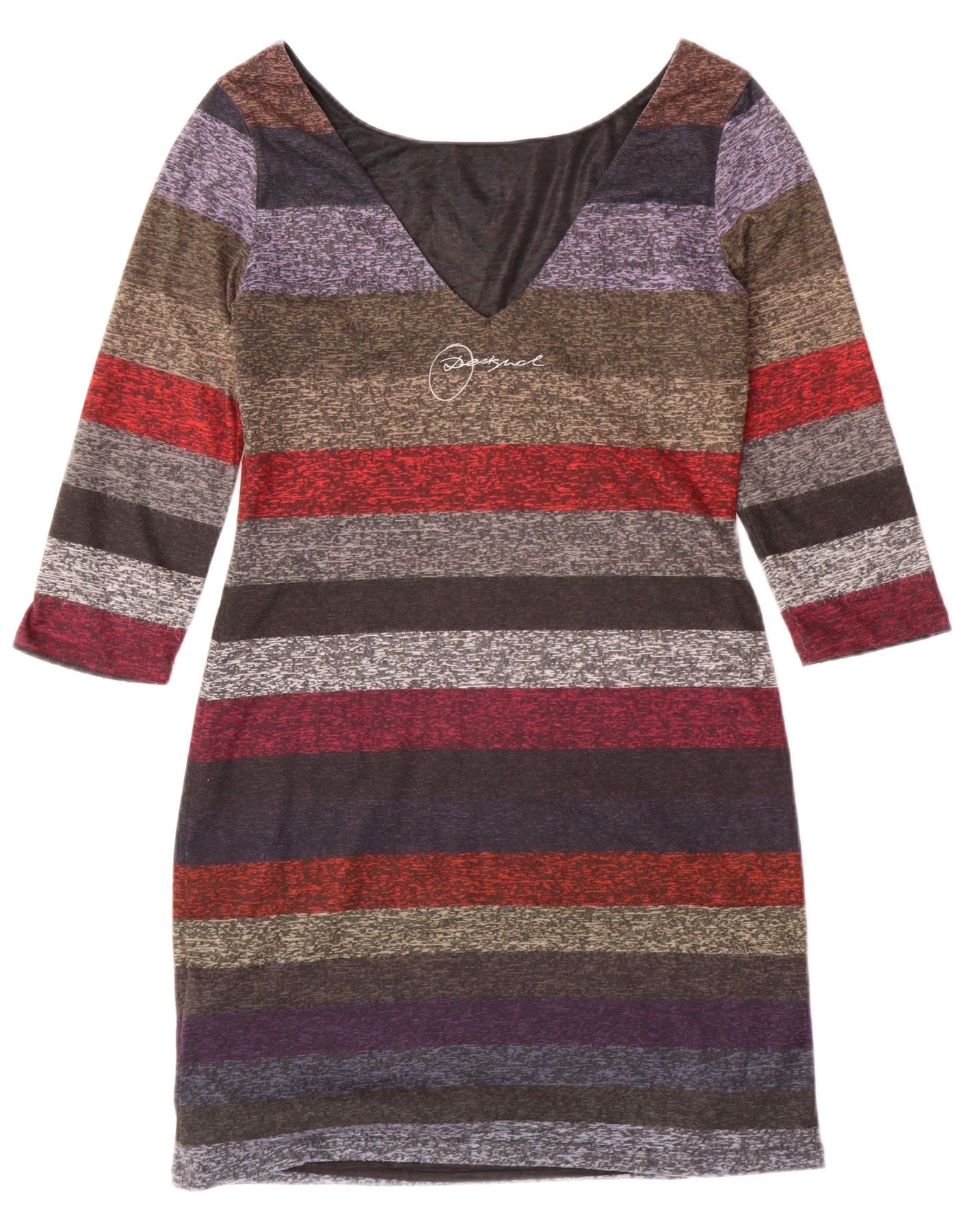 DESIGUAL Женское платье-футляр с рукавом 3/4 UK 12, среднее, разноцветное в полоску