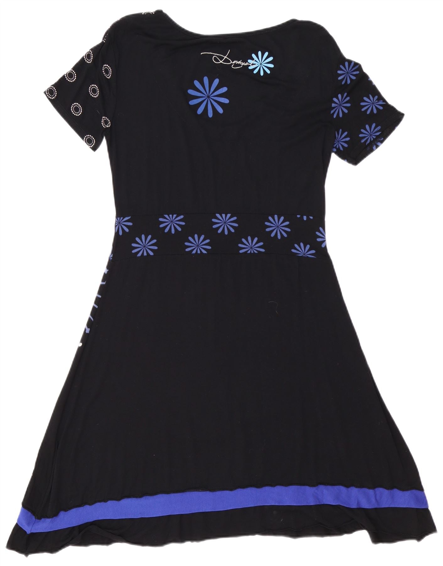 DESIGUAL Женское платье трапециевидного силуэта UK 18 XL, черное из вискозы с цветочным принтом