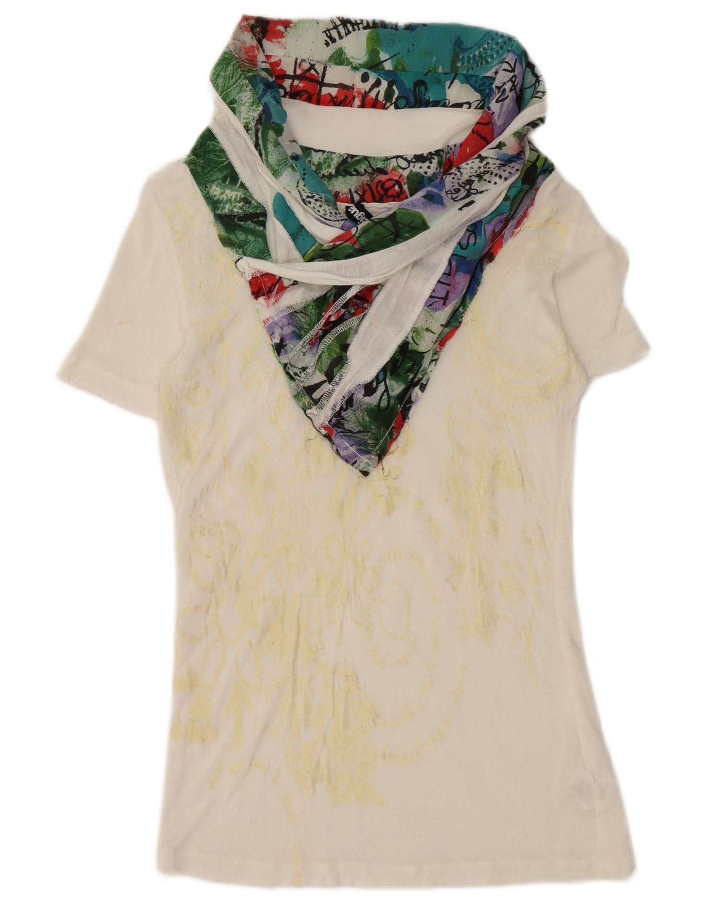 Женская блузка с вырезом Desigual Top UK 10, маленькая, белая вискоза