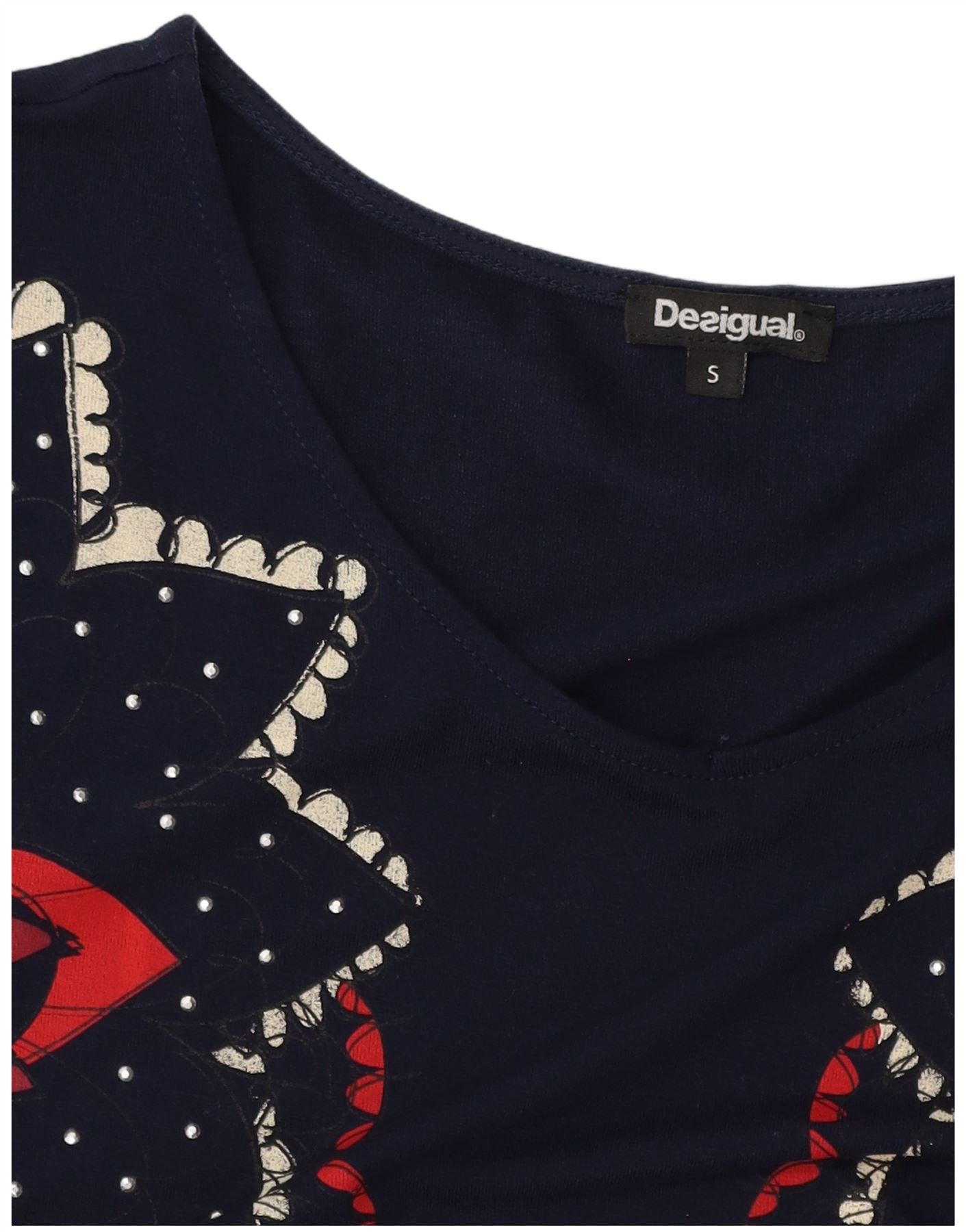 Женское платье трапециевидного силуэта с графическим рисунком DESIGUAL UK 10, маленькое темно-синее с цветочным принтом