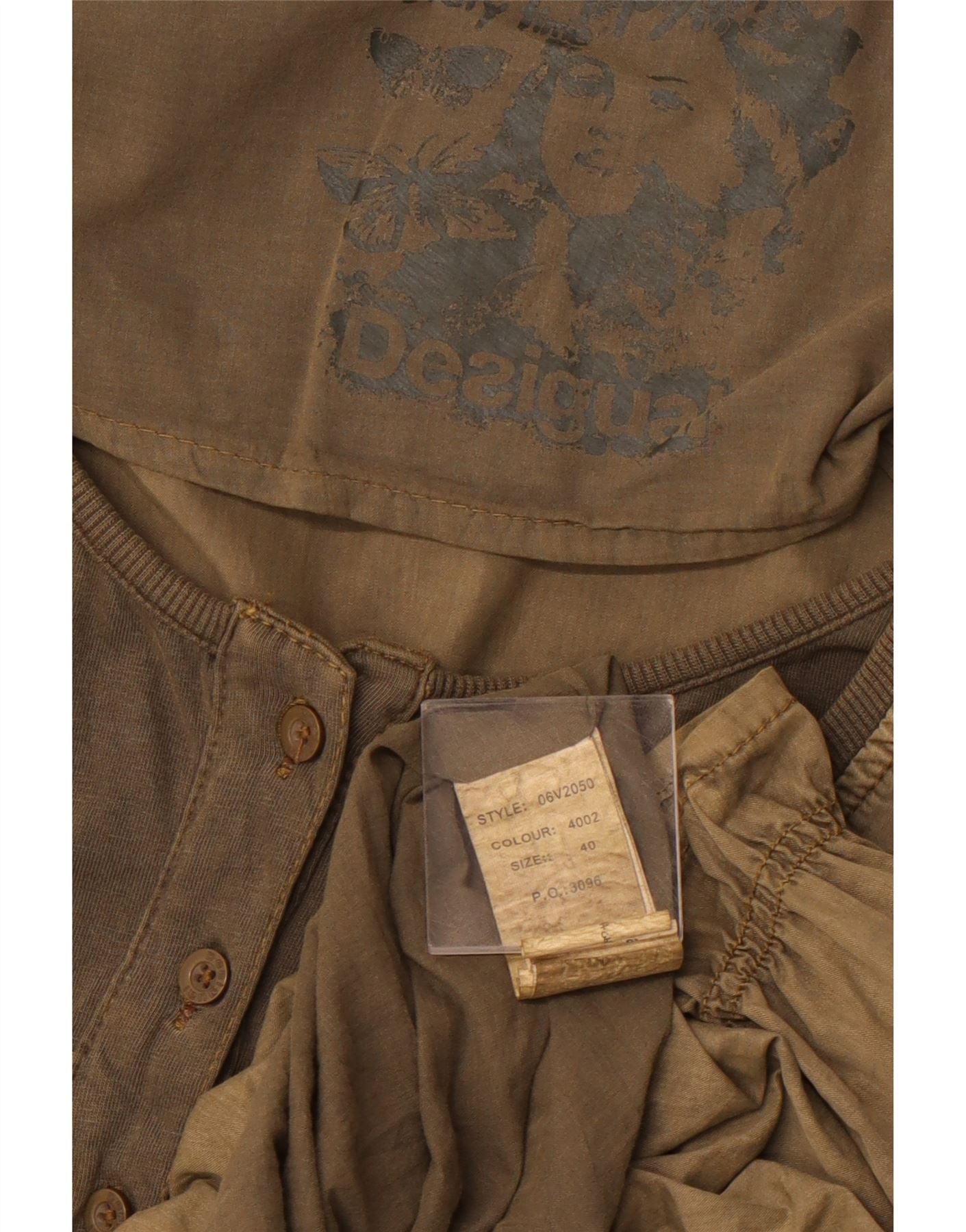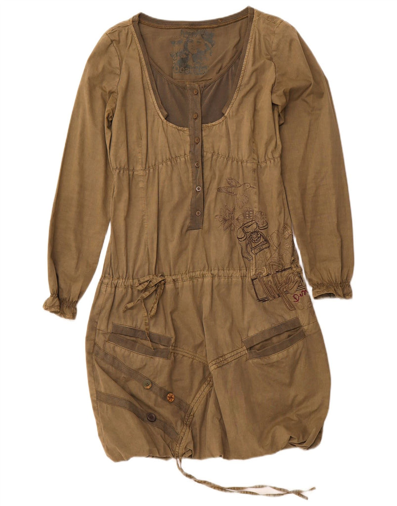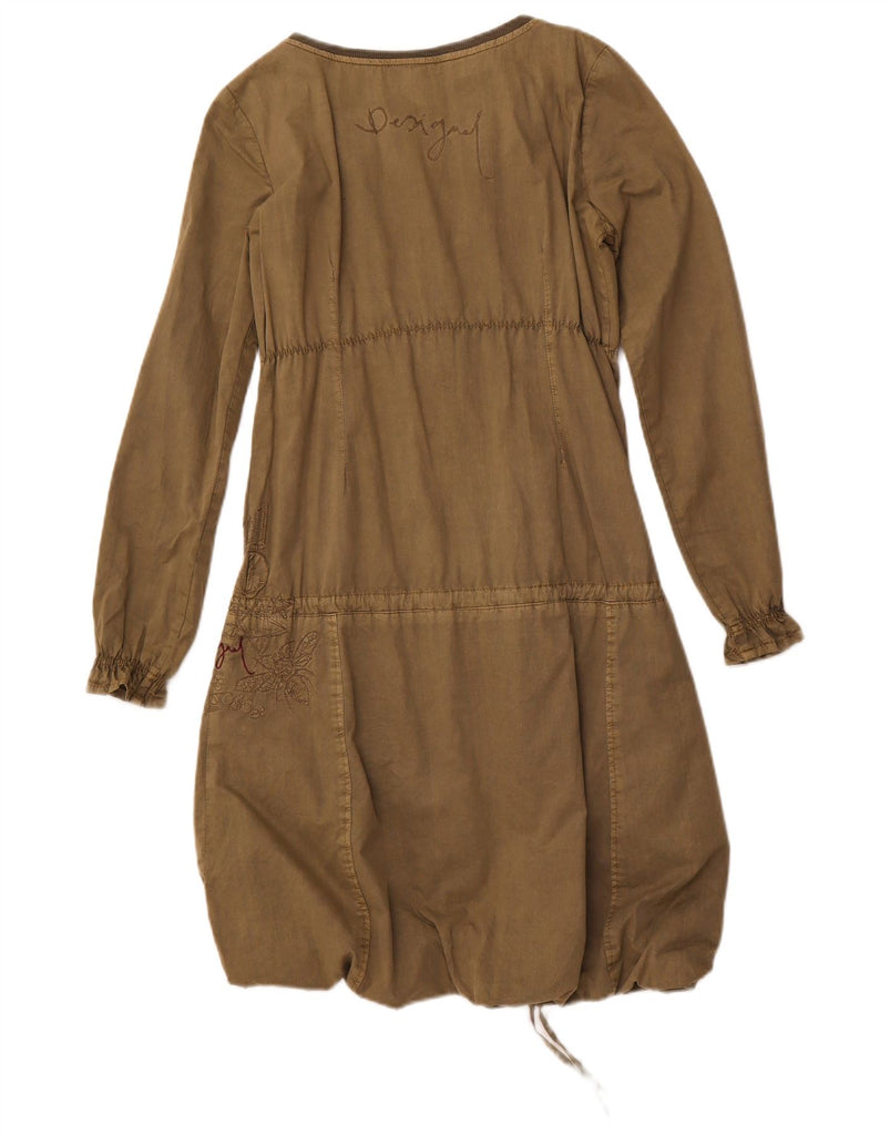 Женское платье DESIGUAL с длинными рукавами и рисунком, цвет EU 40, средний цвет хаки, хлопок