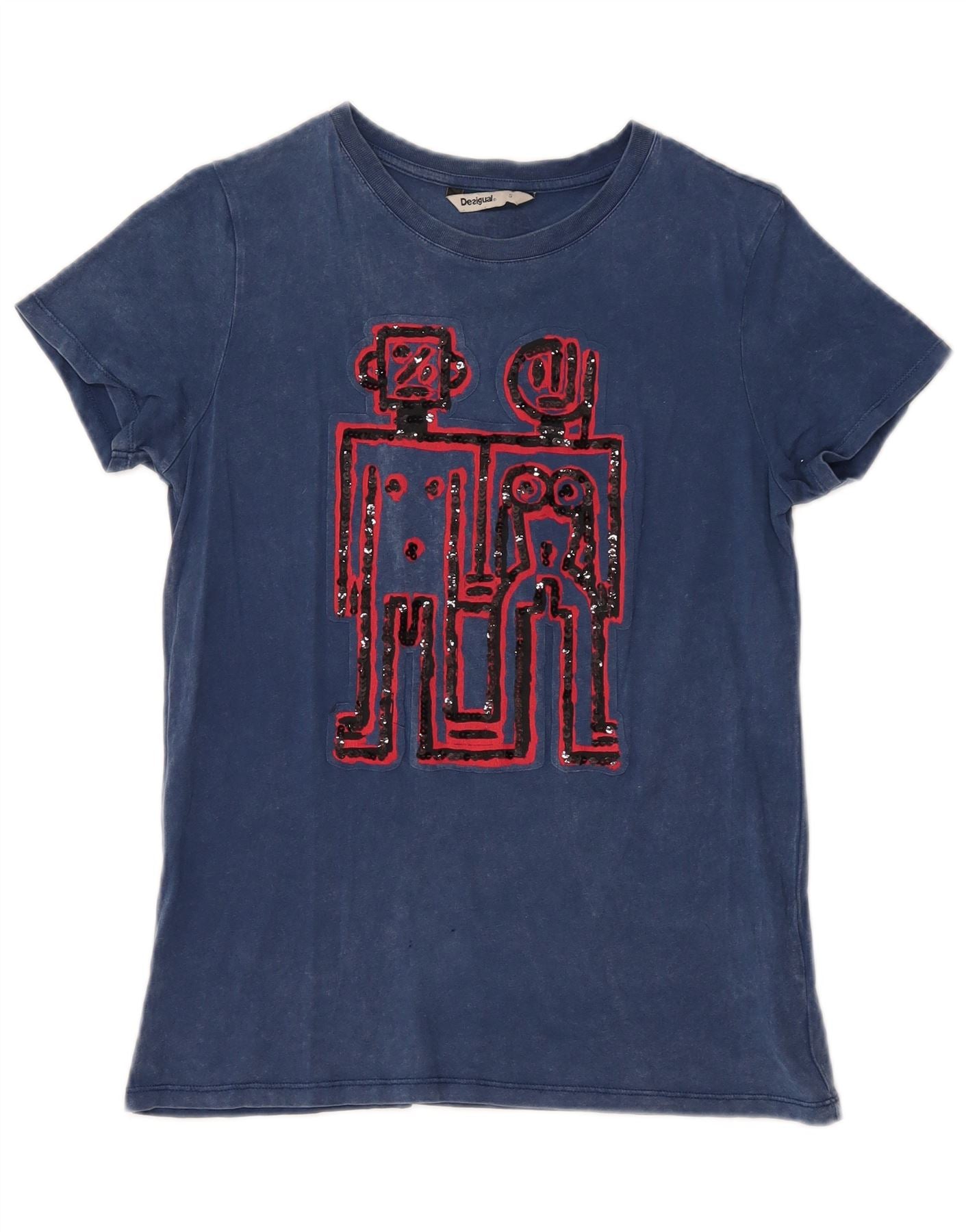 Женская футболка с рисунком Desigual Top UK 10, маленькая, синяя, хлопок