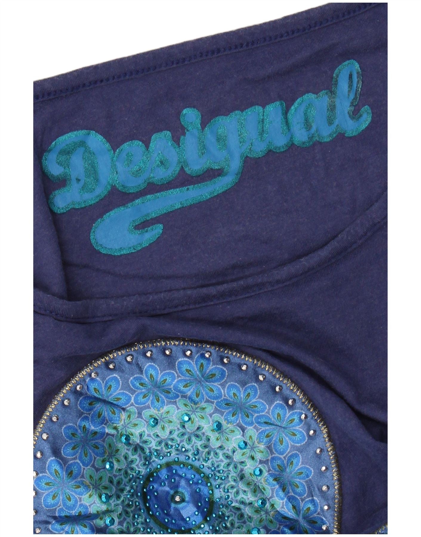 Женская футболка с рисунком DESIGUAL Top UK 12 Medium Navy Blue с цветочным принтом