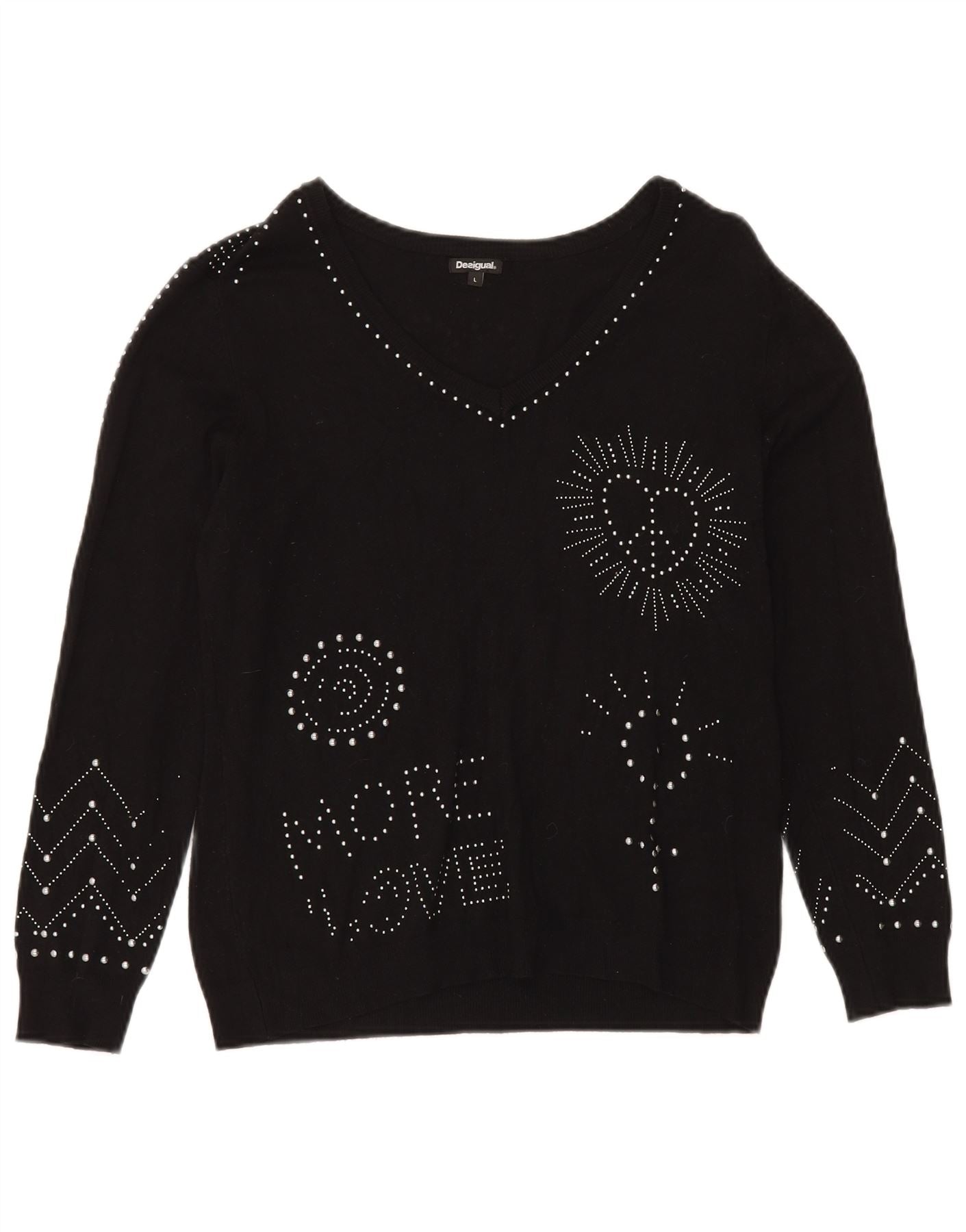 Женский джемпер с V-образным вырезом и рисунком DESIGUAL UK 16, большой черный синтетический