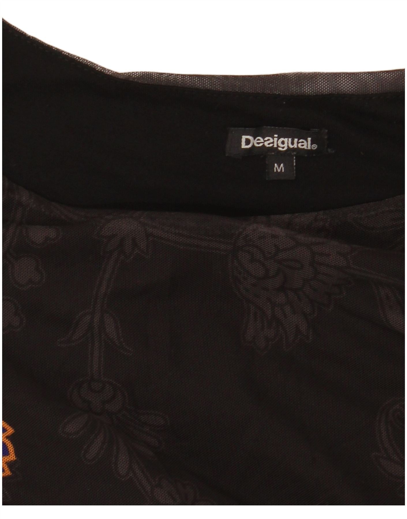 DESIGUAL Женская блузка с длинным рукавом, топ UK 12, средний черный с цветочным принтом