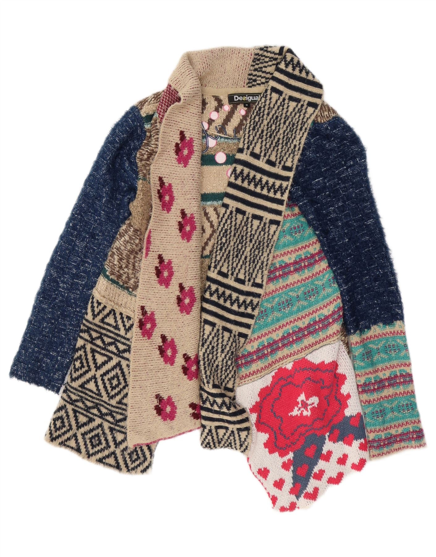 DESIGUAL Womens Open Cardigan Sweater UK 14 Medium Multicoloured Patchwork