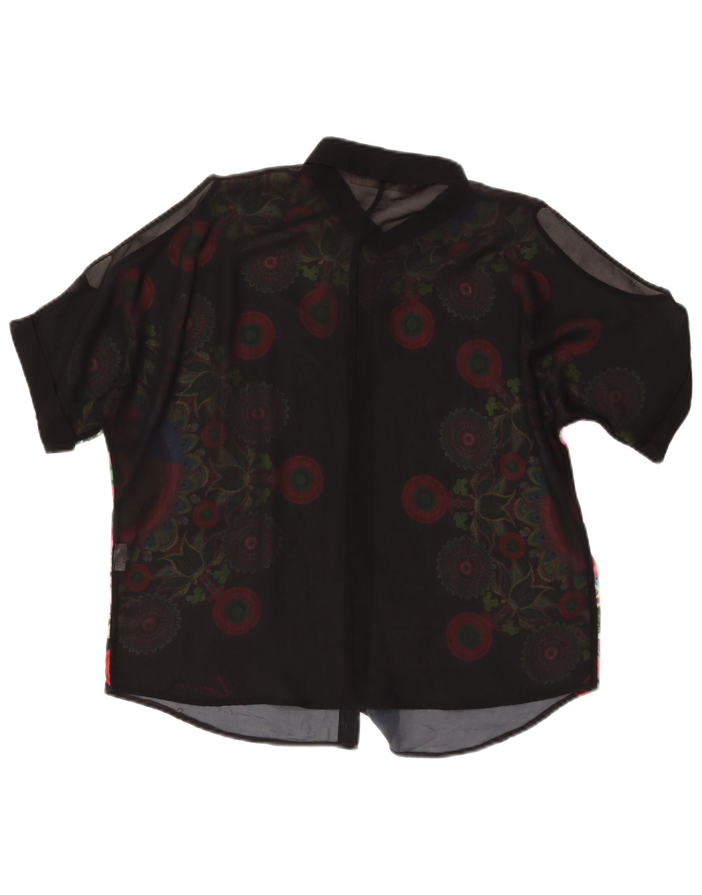 Женская прозрачная блузка-рубашка DESIGUAL UK 16, большая черная с цветочным принтом