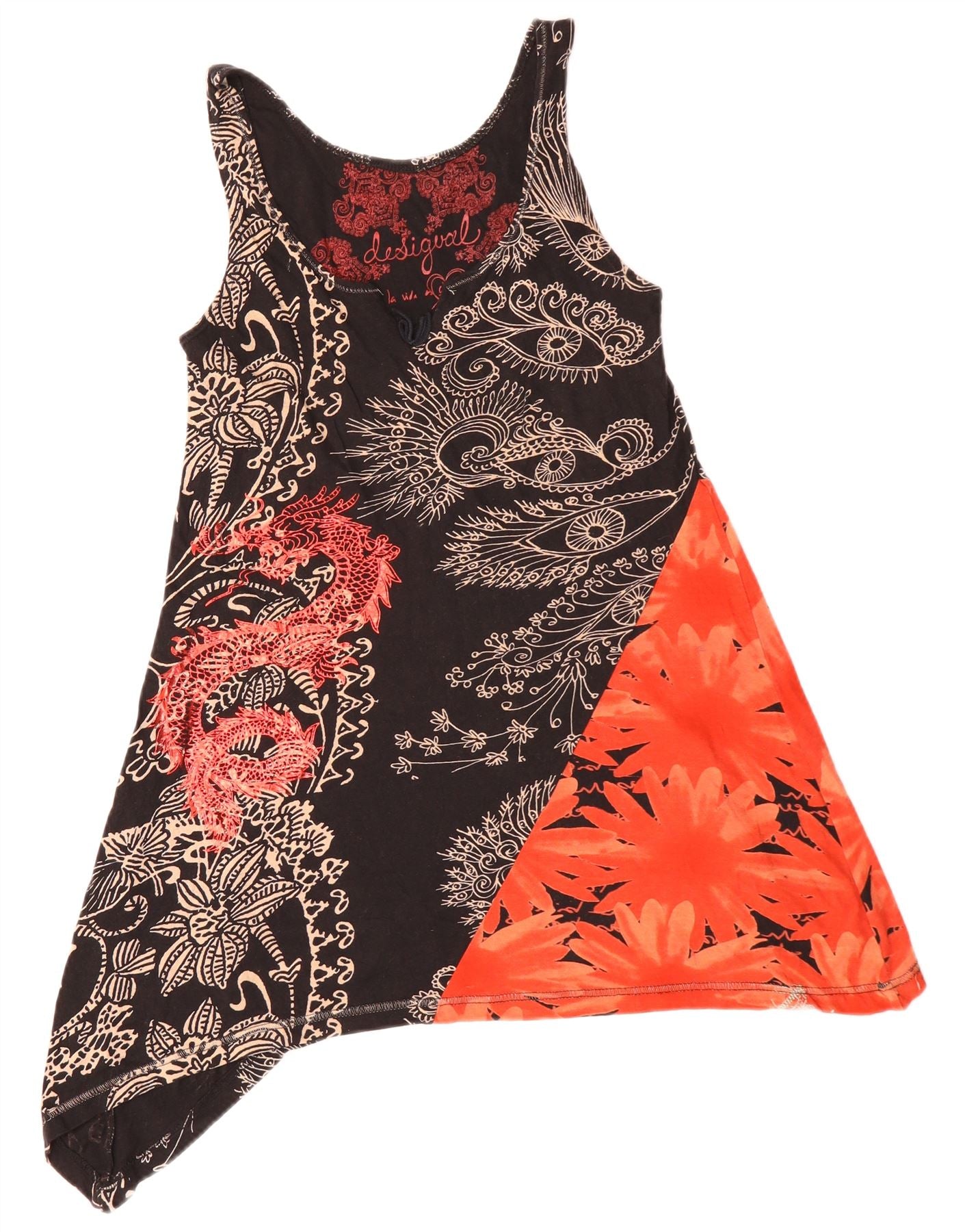 DESIGUAL Женская асимметричная туника без рукавов UK 10, маленькая, черная с цветочным принтом