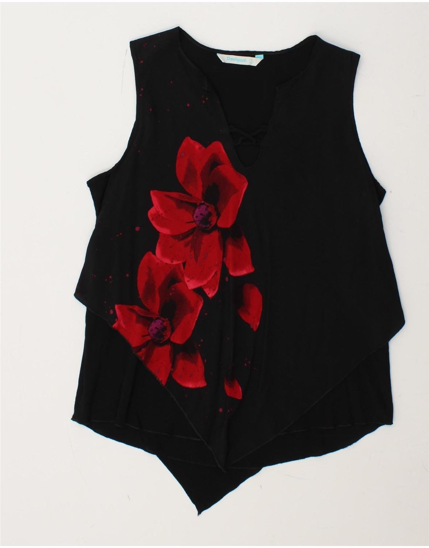 Женская блузка без рукавов DESIGUAL UK 14, большая черная с цветочным принтом
