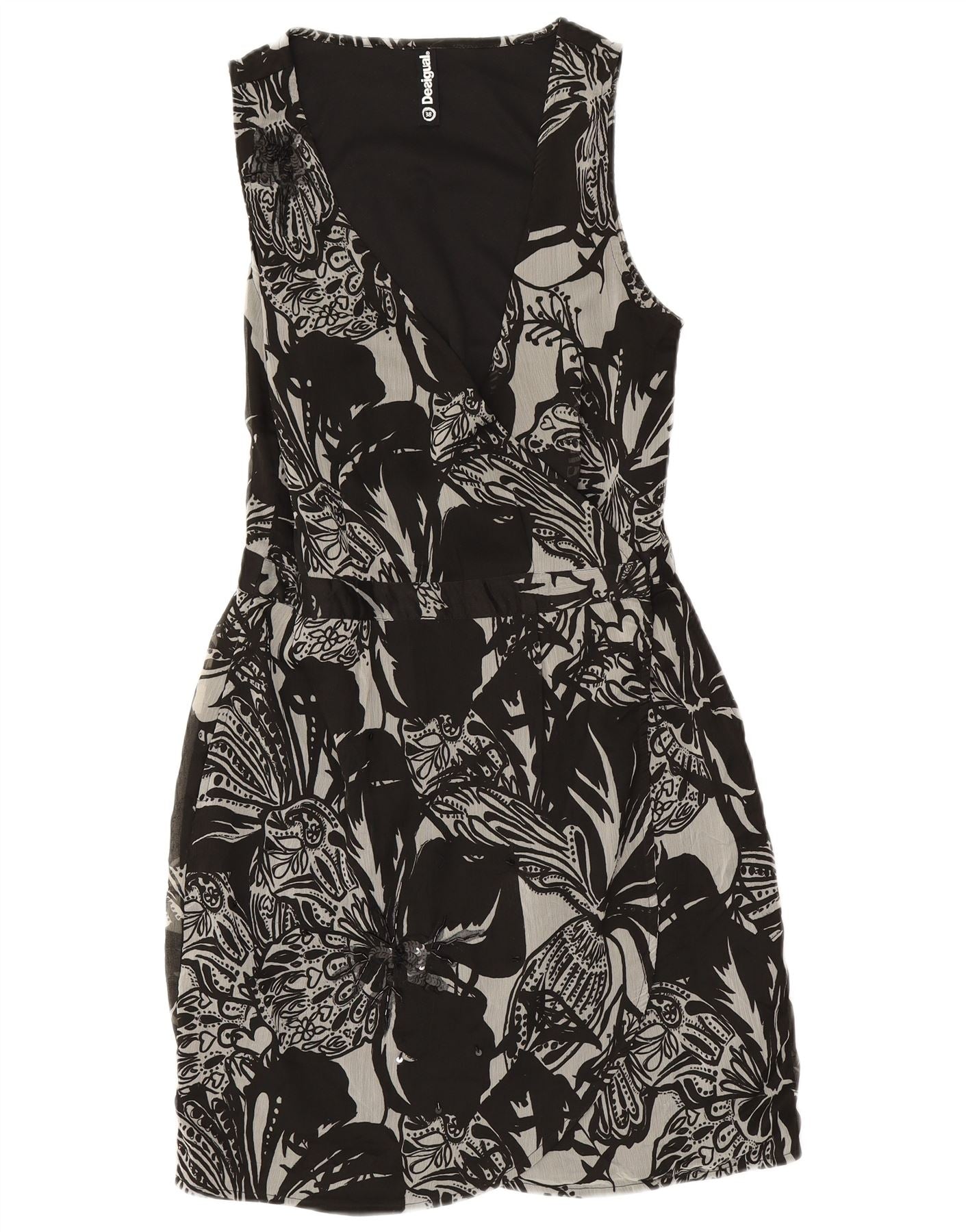 DESIGUAL Женское платье без рукавов с запахом EU 38, средний черный цветочный полиэстер