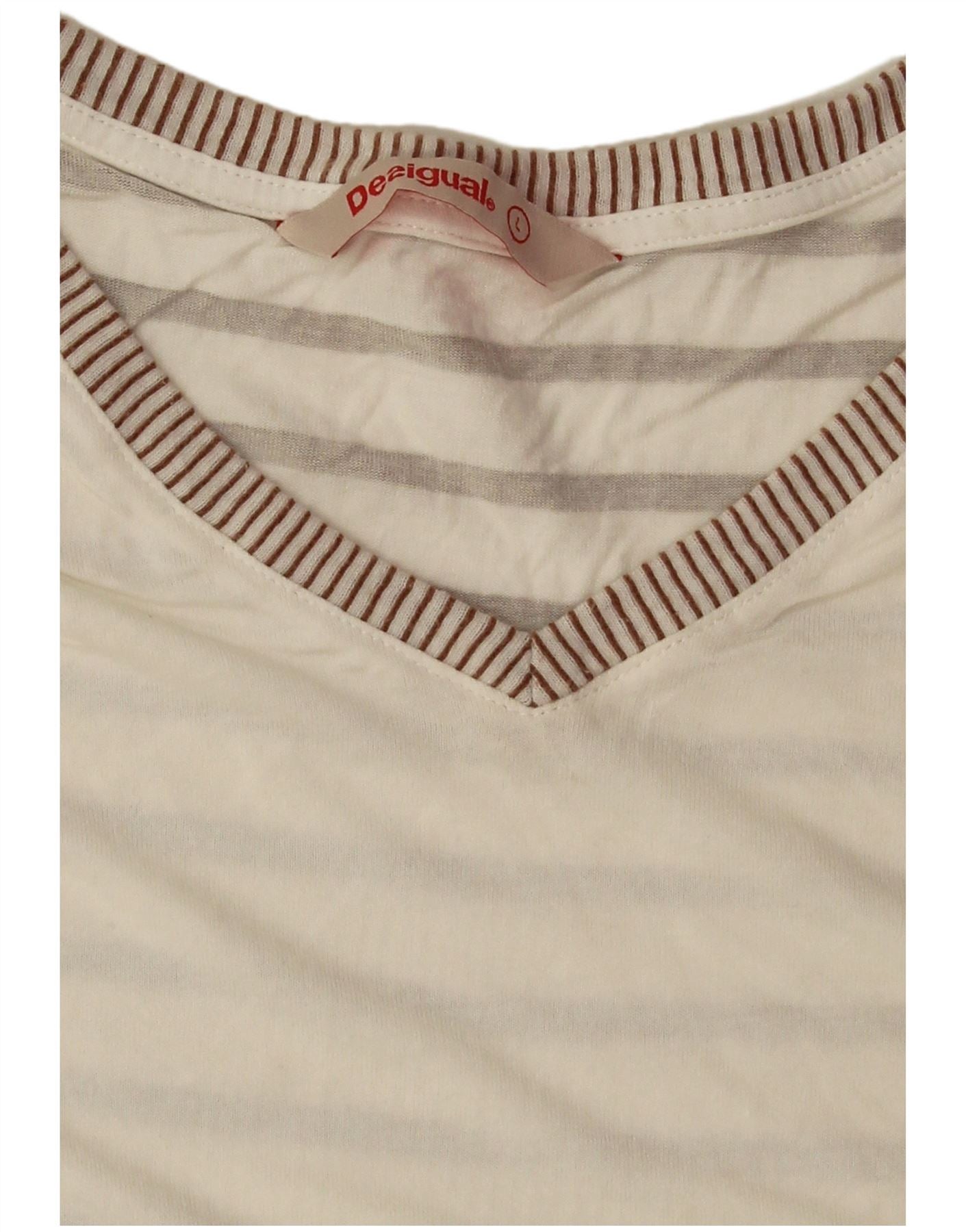 Женская футболка Desigual Top UK 16, большая белая с цветочным принтом