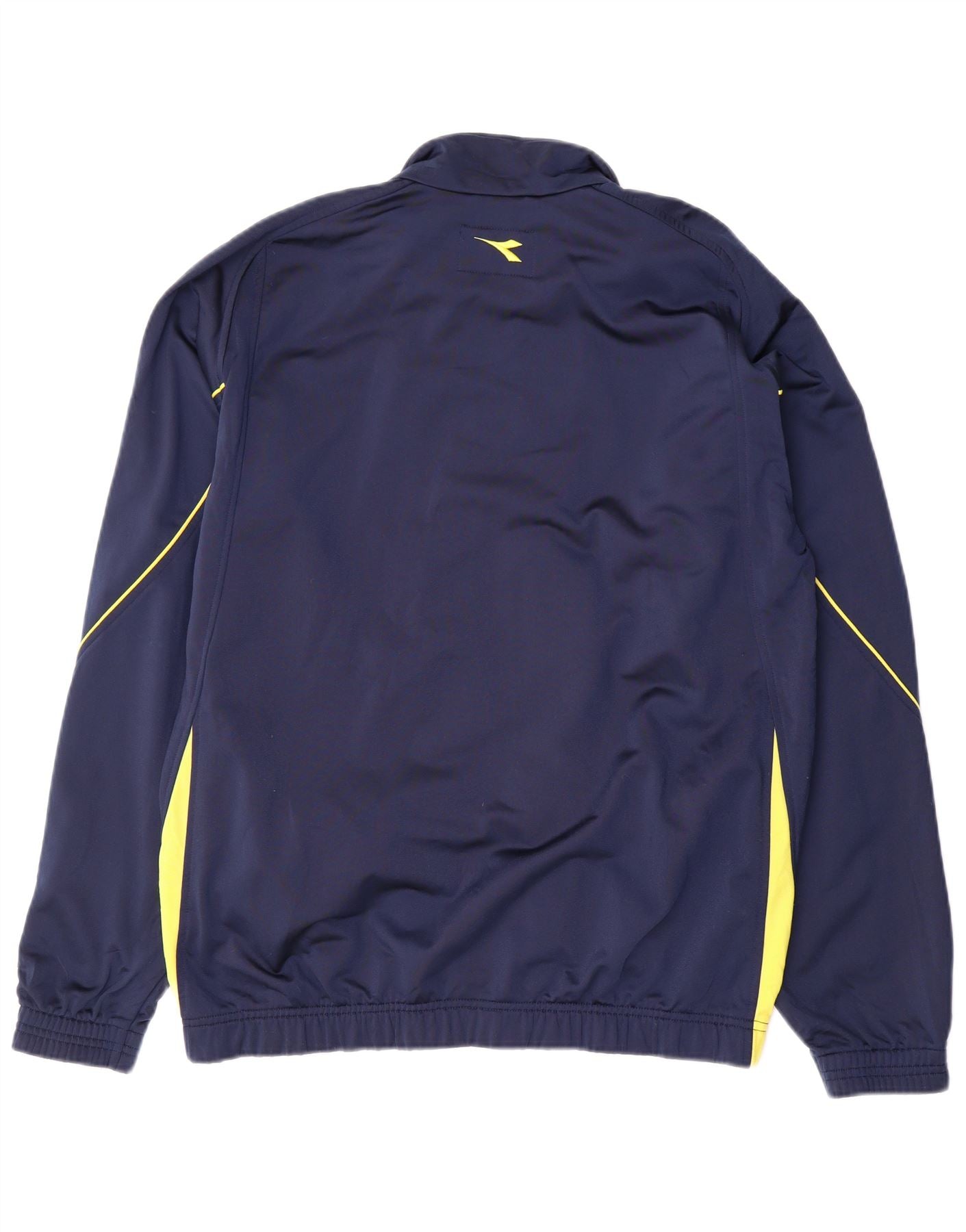- Описание ИИ: Мужской спортивный пиджак Diadora выполнен из гладкого полиэстера темно-синего цвета. Модель имеет классический воротник с воротником и застежку-молнию, обеспечивающую универсальность ношения. Длинные рукава и стандартный крой обеспечивают комфорт в движении. Желтые акценты вдоль рукавов и по бокам добавляют динамичный контраст. Логотип Diadora тонко расположен, дополняя спортивный дизайн.