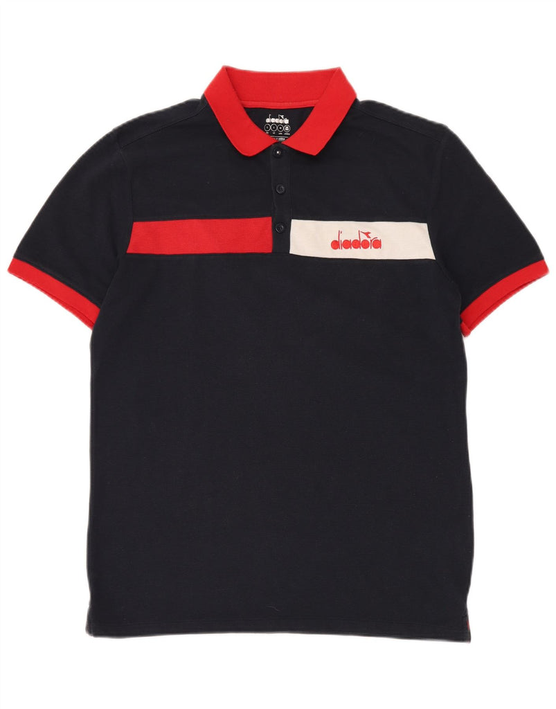 Мужская рубашка-поло DIADORA, большая, темно-синяя, хлопковая с цветными блоками