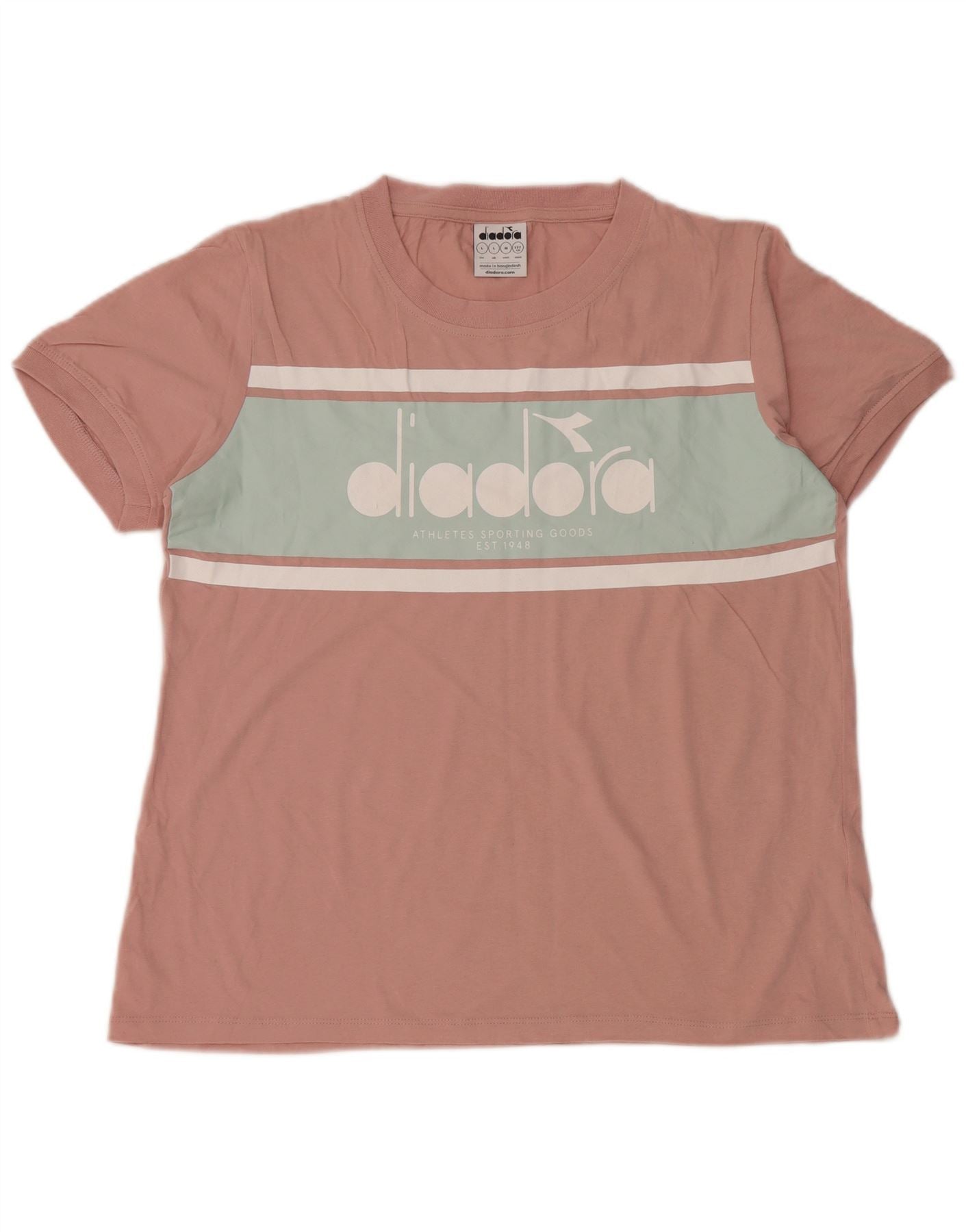 Женская футболка с рисунком DIADORA Top UK 14, большой размер, розовый хлопок с цветными блоками