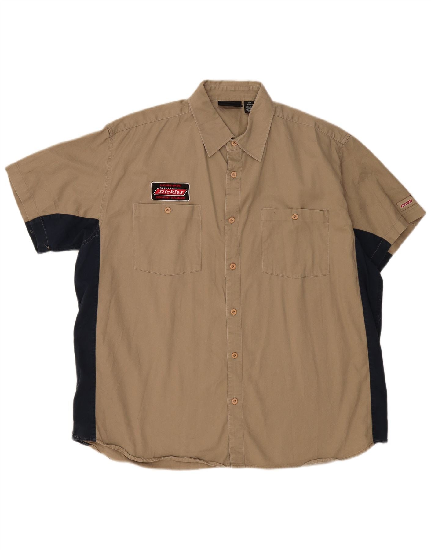 DICKIES Мужская рубашка с коротким рукавом 2XL бежевая, хлопок с цветными блоками