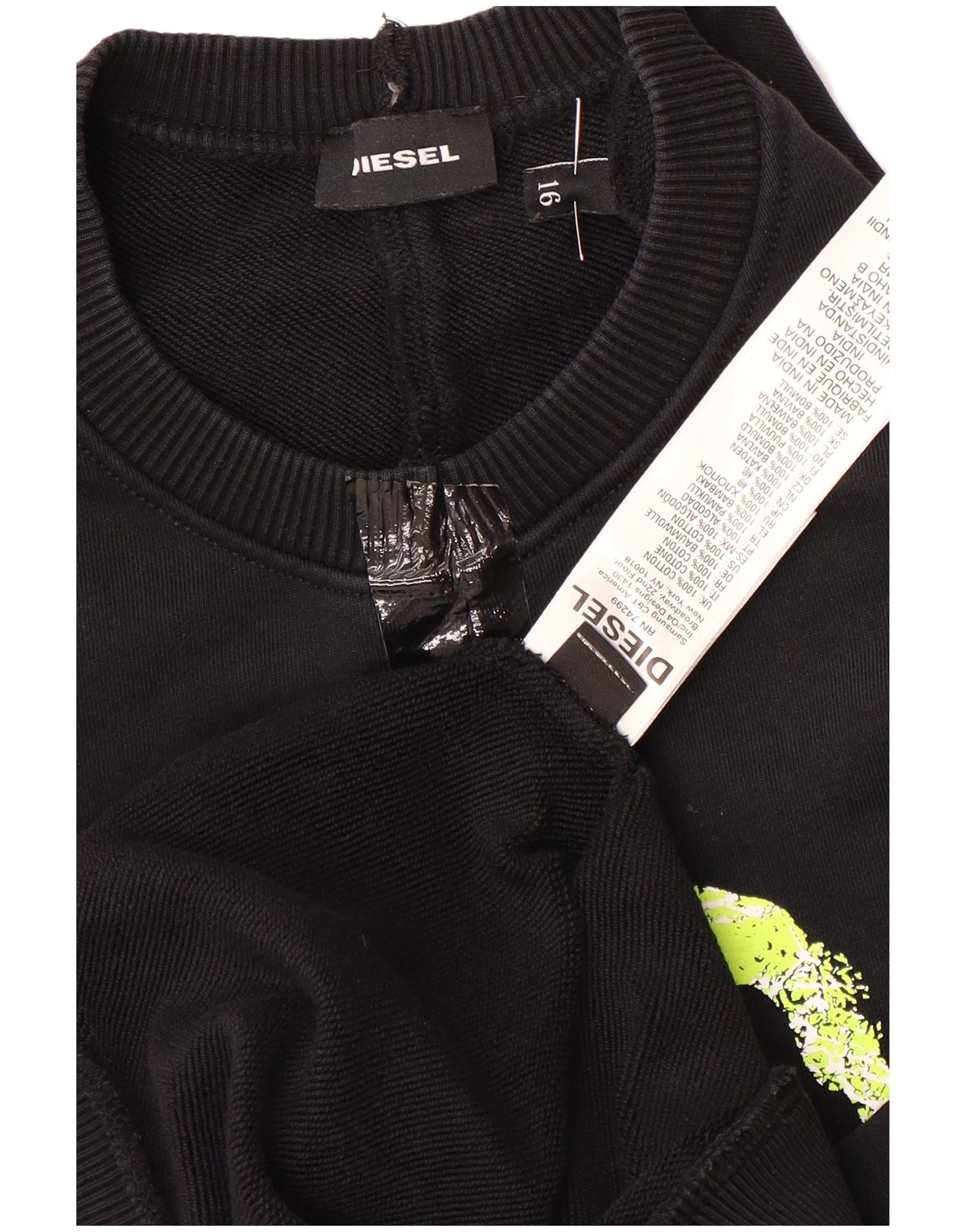 Джемпер с рисунком Diesel для мальчиков 15-16 лет, черный хлопок