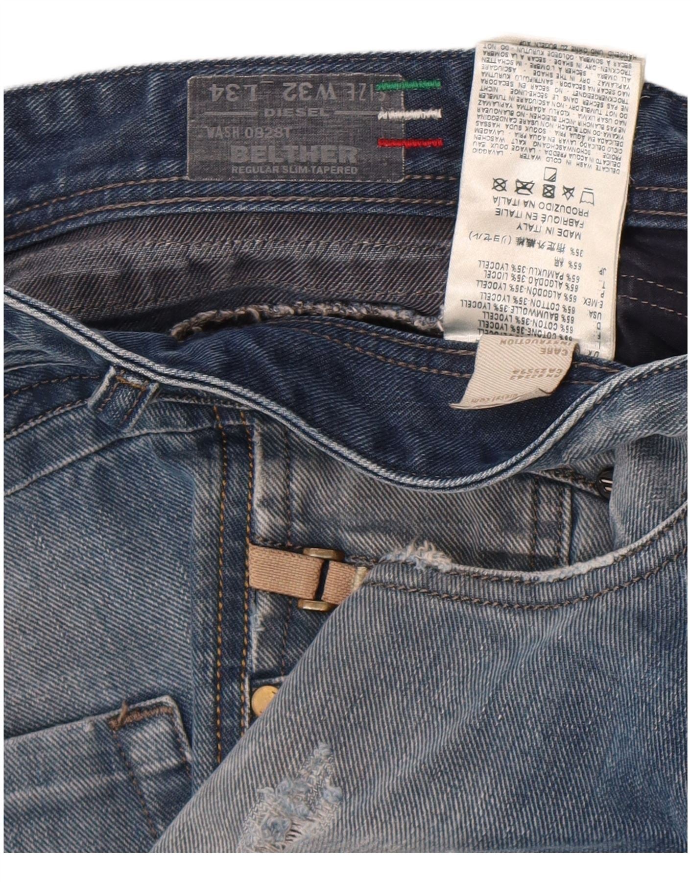 Мужские прямые джинсы Diesel с поясом W32 L34, синий хлопок