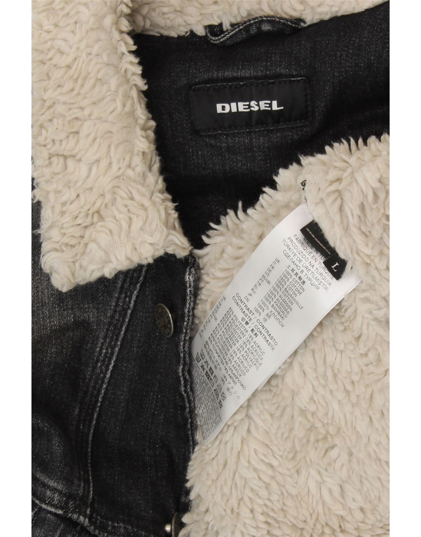 Мужская джинсовая куртка-шерпа DIESEL UK 40, большая серая, хлопок