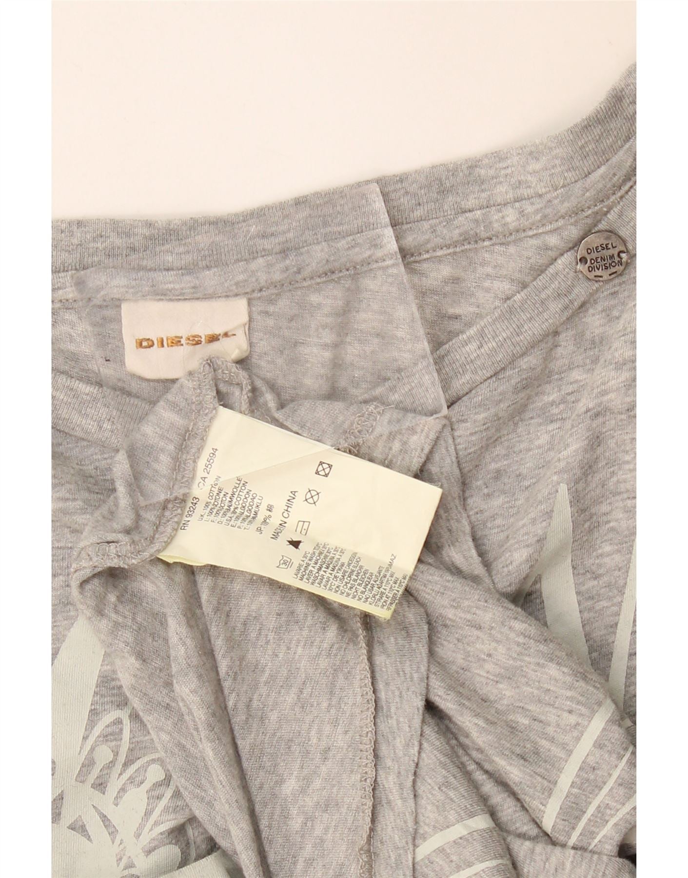 Женская футболка оверсайз с рисунком Diesel Top UK 14, средний серый хлопок