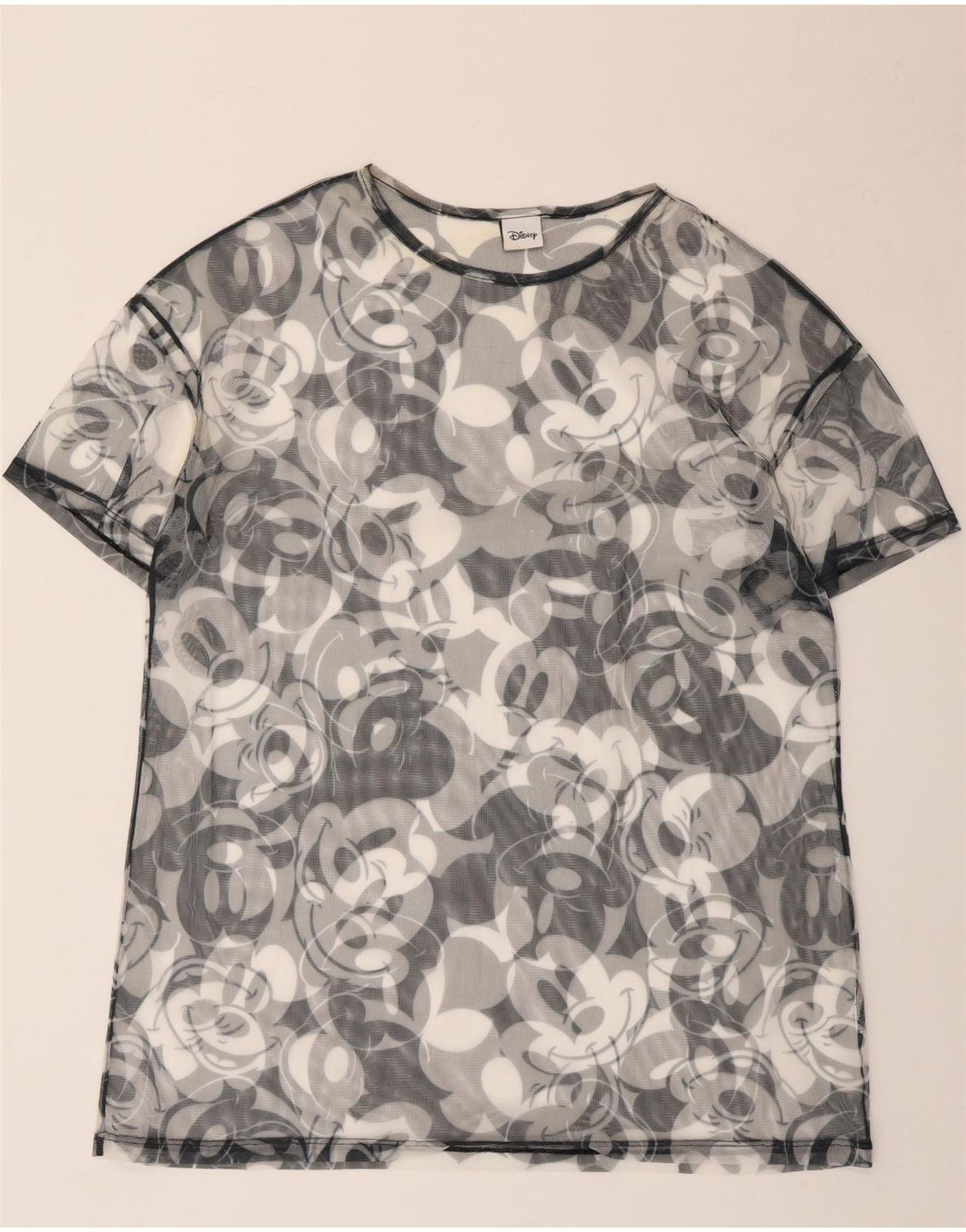 - Описание ИИ: Женская футболка с рисунком Disney изготовлена из легкой прозрачной сетчатой ткани. Он имеет характерный разноцветный узор с цветными блоками, демонстрирующий культовые мотивы Микки Мауса в оттенках черного, белого и серого. Топ имеет классический круглый вырез и короткие рукава. Стандартная посадка обеспечивает удобный современный силуэт. Этот пуловер идеально подходит для многослойной одежды, добавляя игривости любому наряду.