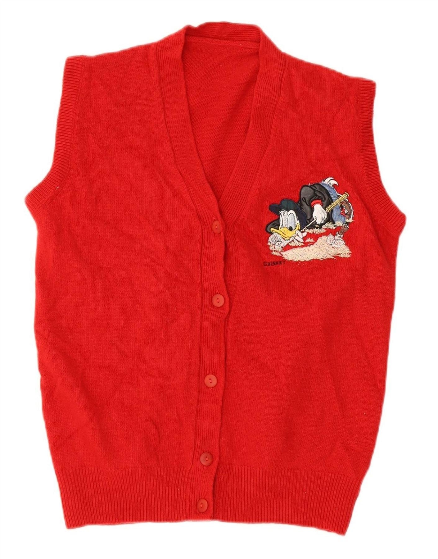 DISNEY Womens Pluto Graphic Sleeveless Cardigan Sweater UK 16 Large Red